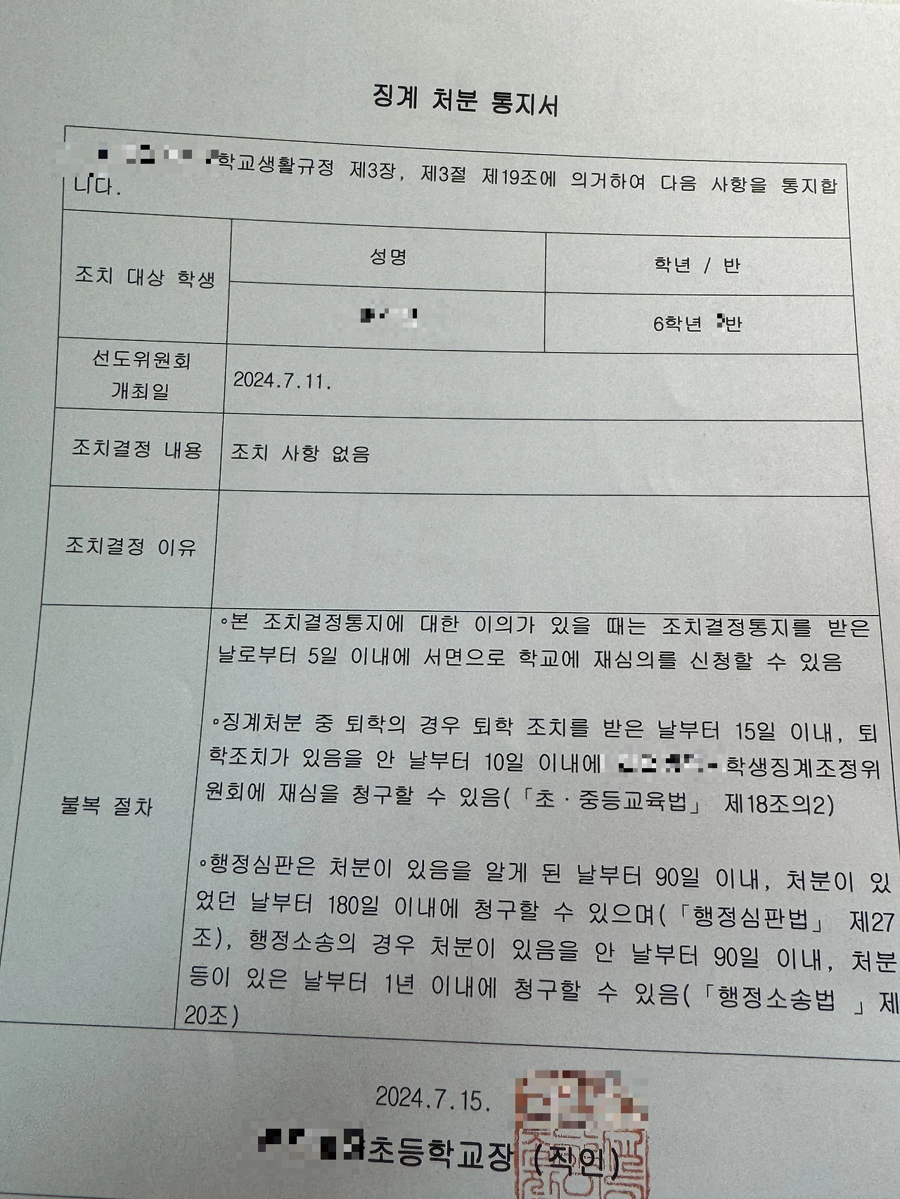 여기까지가 전부였다. 다음 주 안에 집으로 징계 처분 통지서 우편을 보낼 테니, 잘 확인해 달라고 했다. 이 얘기를 끝으로 그날의 우리 역할은 끝났고, 집으로 돌아갈 수 있었다.