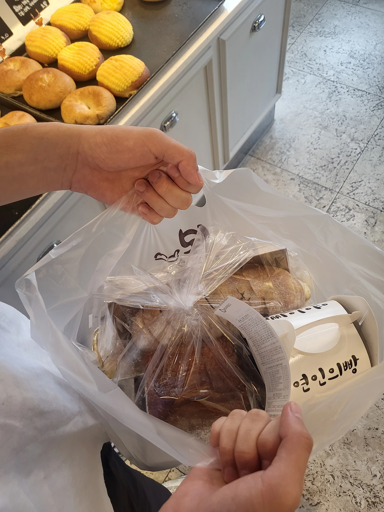 근처에는 마늘 바게트로 유명한 빵집이 있었어요. 여행이 착착 계획대로 흘러가는 게 기쁜 엄마는 빵집을 지나치지 않습니다. 이곳 역시 평소에는 붐비지만 지금은 이른 시간이라 한적합니다. 따끈하게 나온 새 빵을 영접하는 건 두리둥실 뭉게구름을 뱃속에 넣은 기분이죠. 매대 가득한 빵에서 눈을 떼지 못하는 우리를 저지하는 건 역시 큰아이. 어렵게 어렵게 고민 끝에 빵 여섯 개를 두 손 가득 골라 나옵니다. 빵은 남아도 집에 가져갈 수 있으니까, 괜찮아요.