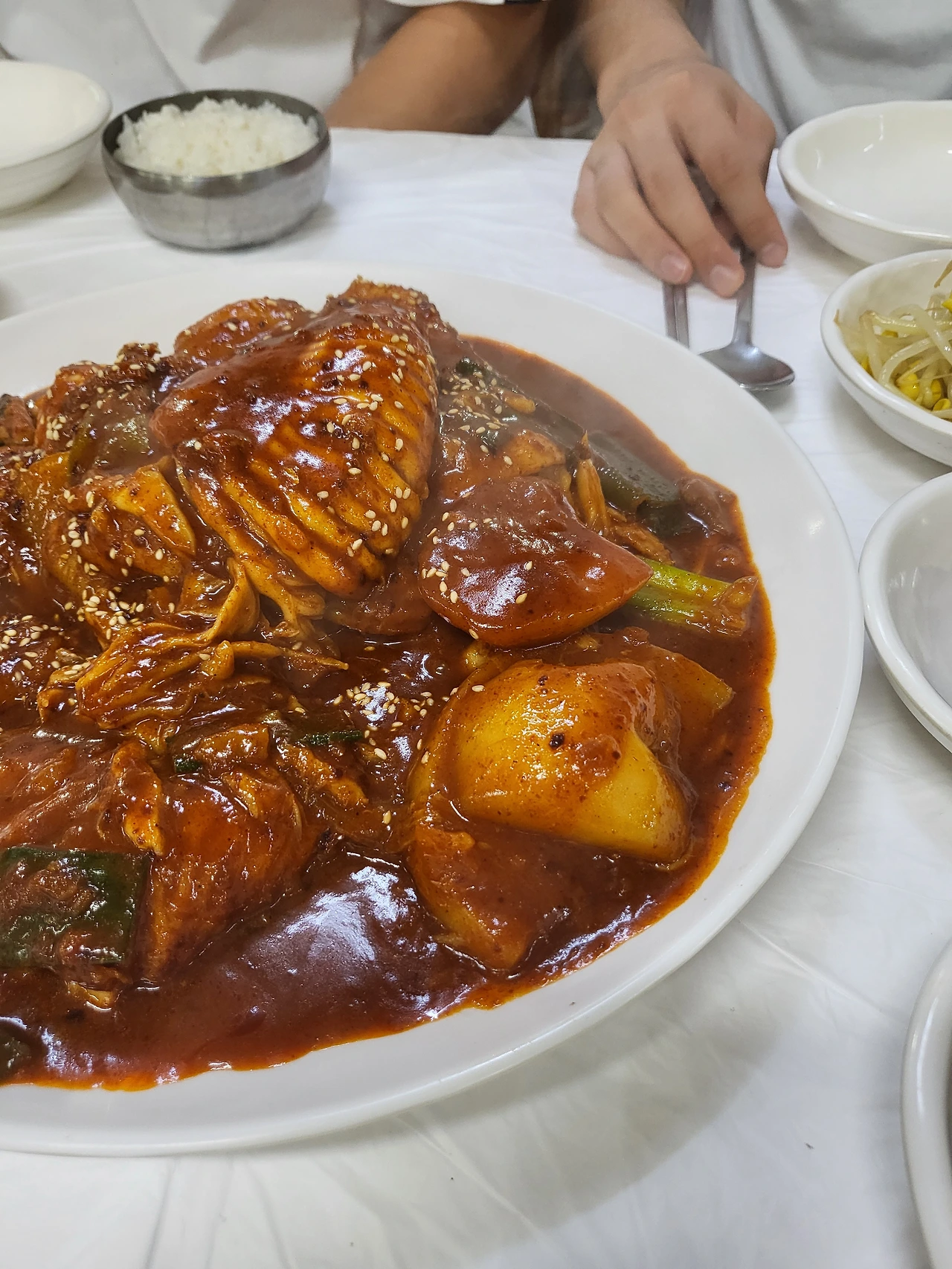 점심은 고민 끝에 가오리찜으로 결정했습니다. 우선순위에 없던 곳인데 맛깔스럽게 간을 한 가오리찜이 입에서 살살 녹습니다. 아이들은 공깃밥을 더 시켜 양념을 얹고 착착 비벼 먹습니다. 무와 감자도 으깨 먹는 맛. 침 넘어갑니다.