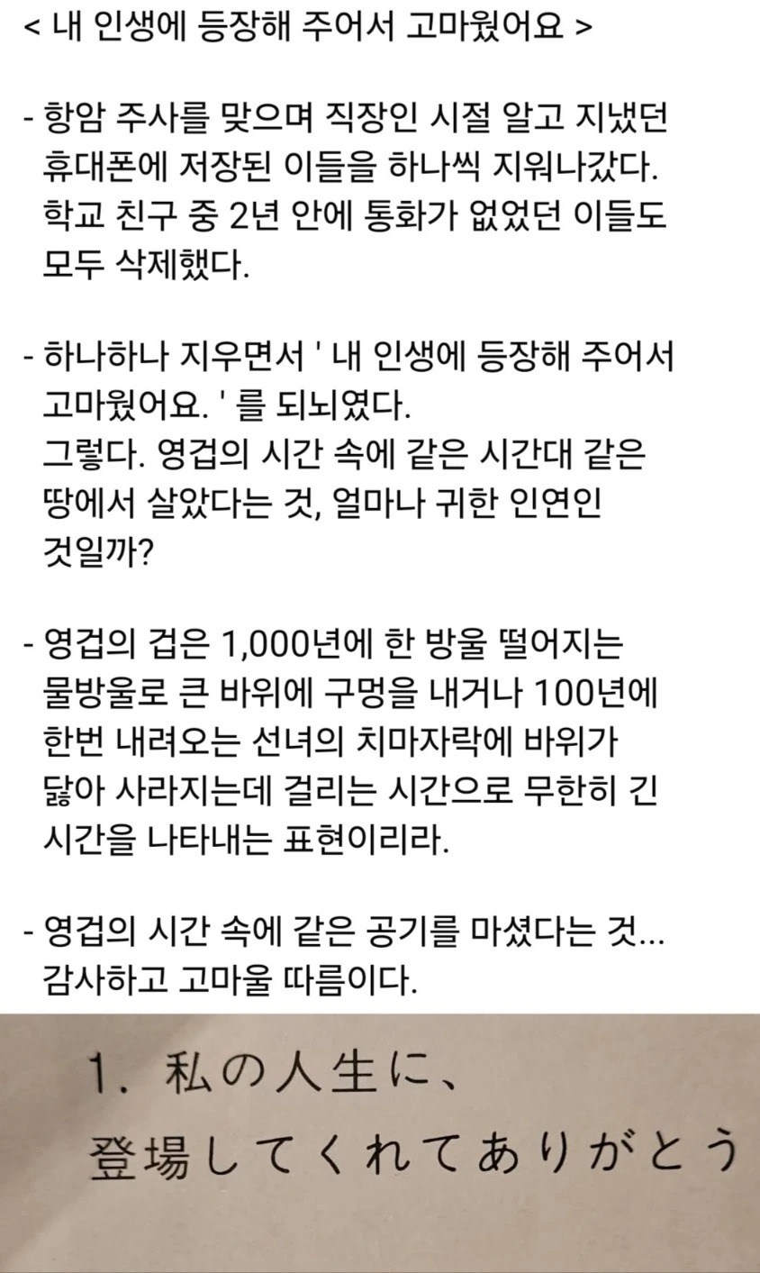 '선생님, 그동안 많이 감사했습니다. 고통 없는 천국에서 이제 편히 쉬세요. 나중에 그곳에서 다시 뵙겠습니다.'