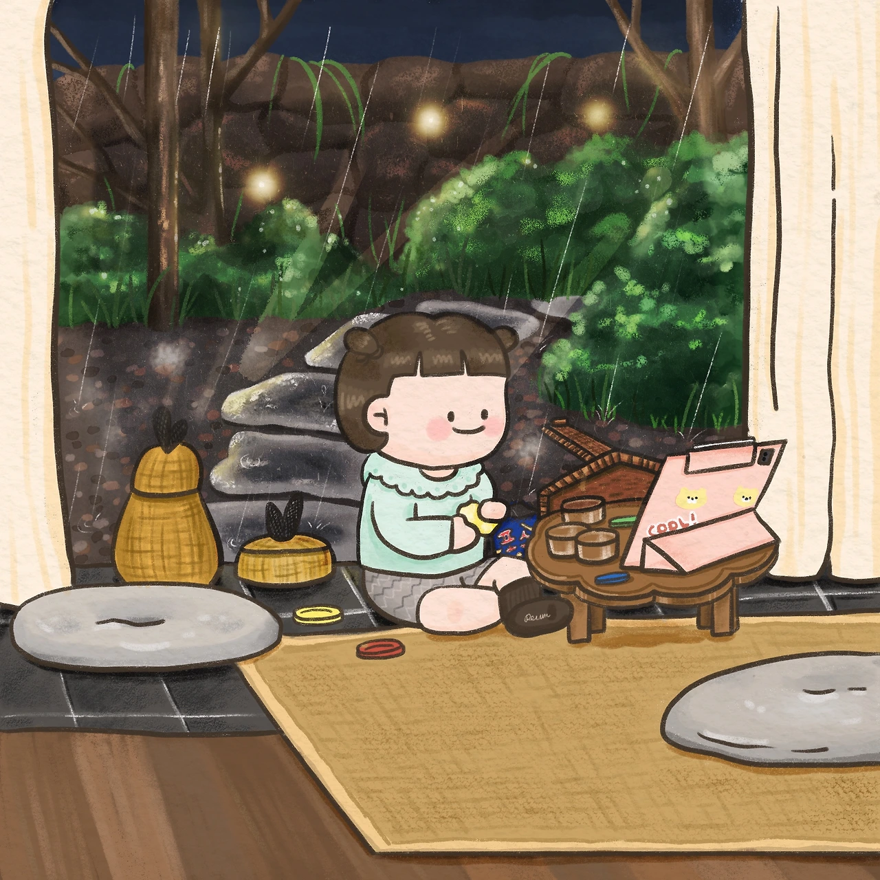 토독토독 떨어지는 빗방울 소리, 그 앞에 앉아있는
