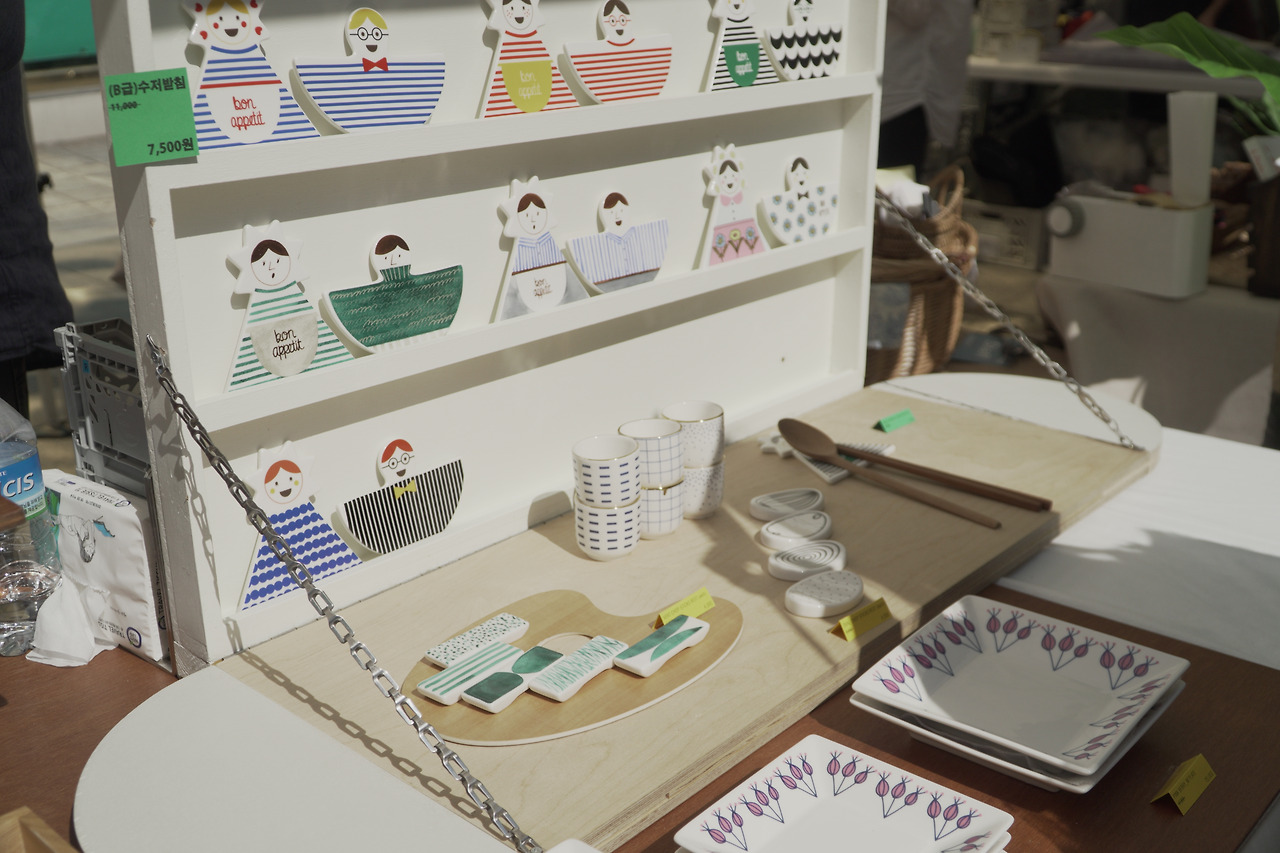 일반적으로 플리마켓이라고 하면 상상할 수 있는 정신없는 제품 디스플레이와 산만한 운영 등은 이곳에서 확인하기 어렵다. 오히려, 정갈하고 매력적인 디스플레이를 위해 애쓴 셀러분들이 대단하다고 느낄 정도다. 물론, 눈길을 사로잡기 위한 셀러들의 노력이지만, 띵굴 시장이라는 브랜드 아래에서 보여야 할 셀러들의 자부심이 느껴지기도 한다.