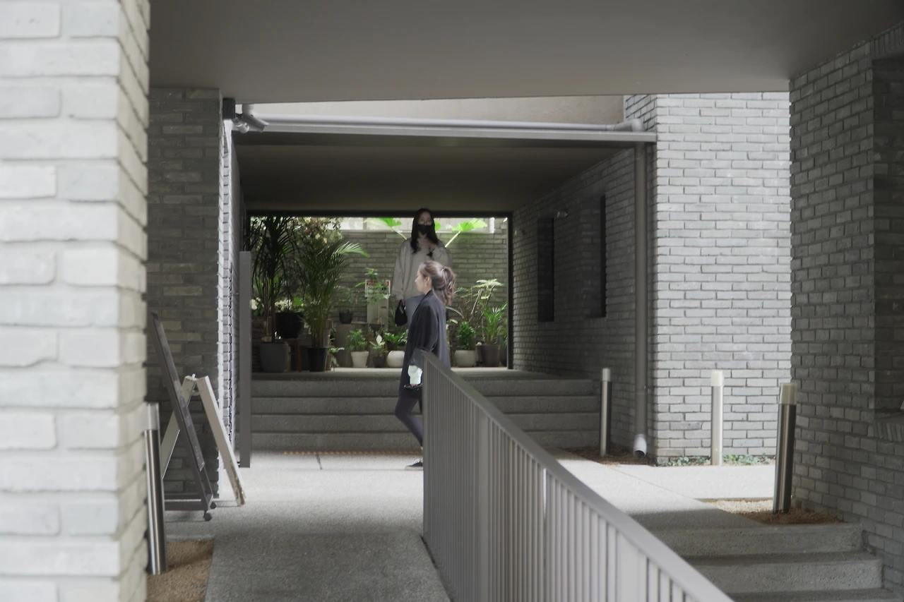 사운즈한남은 빌라와 상가들에 겹겹이 둘러싸인 골목길에 뜬금없고 도도한 정제미를 날린다. 공간에 대한 정체성을 알 수 있는 커다란 간판이나 입점 브랜드가 손쉽게 판단되지 않아 안으로 들어가 보지 않고는 못 배기는 구조다. 아마 처음 방문하게 된다면 여기가 입구가 맞는지 둘러보게 된다.