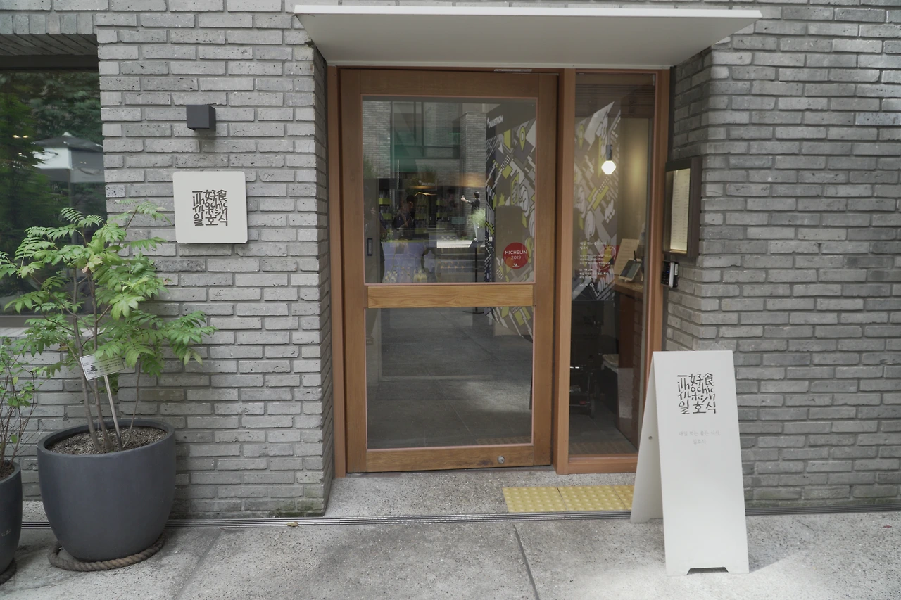 1층과 반지하 사이 높이로 보이는 어느 한식집은 외딴 지역에 있었다면 한식집이 맞는지 의아한 외관을 가졌지만, 이 곳의 공간 정체성과 함께하며 불편함은 사라진다.