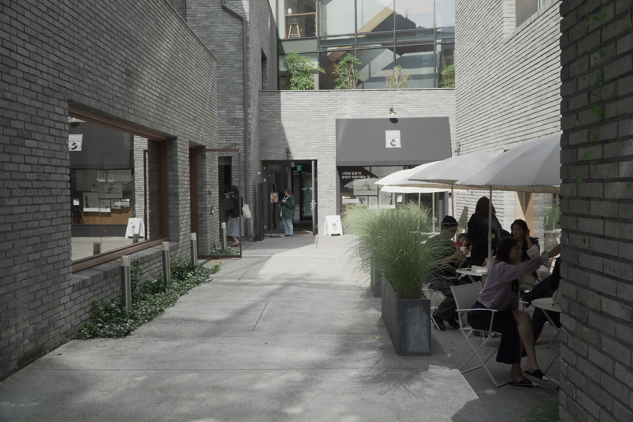 서점에서 시간을 보내고 다시 내려와 돌아보니, 공간의 '효율'보다는 공간의 '역할'에 신경 썼다는 것을 느낀다. 사운즈한남의 노상 공간은 언제든 대화를 시작할 수 있는 공간이다. 목적이 분명한 공간 소비에 익숙한 우리에게 이 공간이 주는 편안함은 자연스럽게 체류 시간이 늘어나며 대화를 이끌게 되는 매력이 있다. (어쩌면 그래서 기본 발렛 시간이 2시간일까)