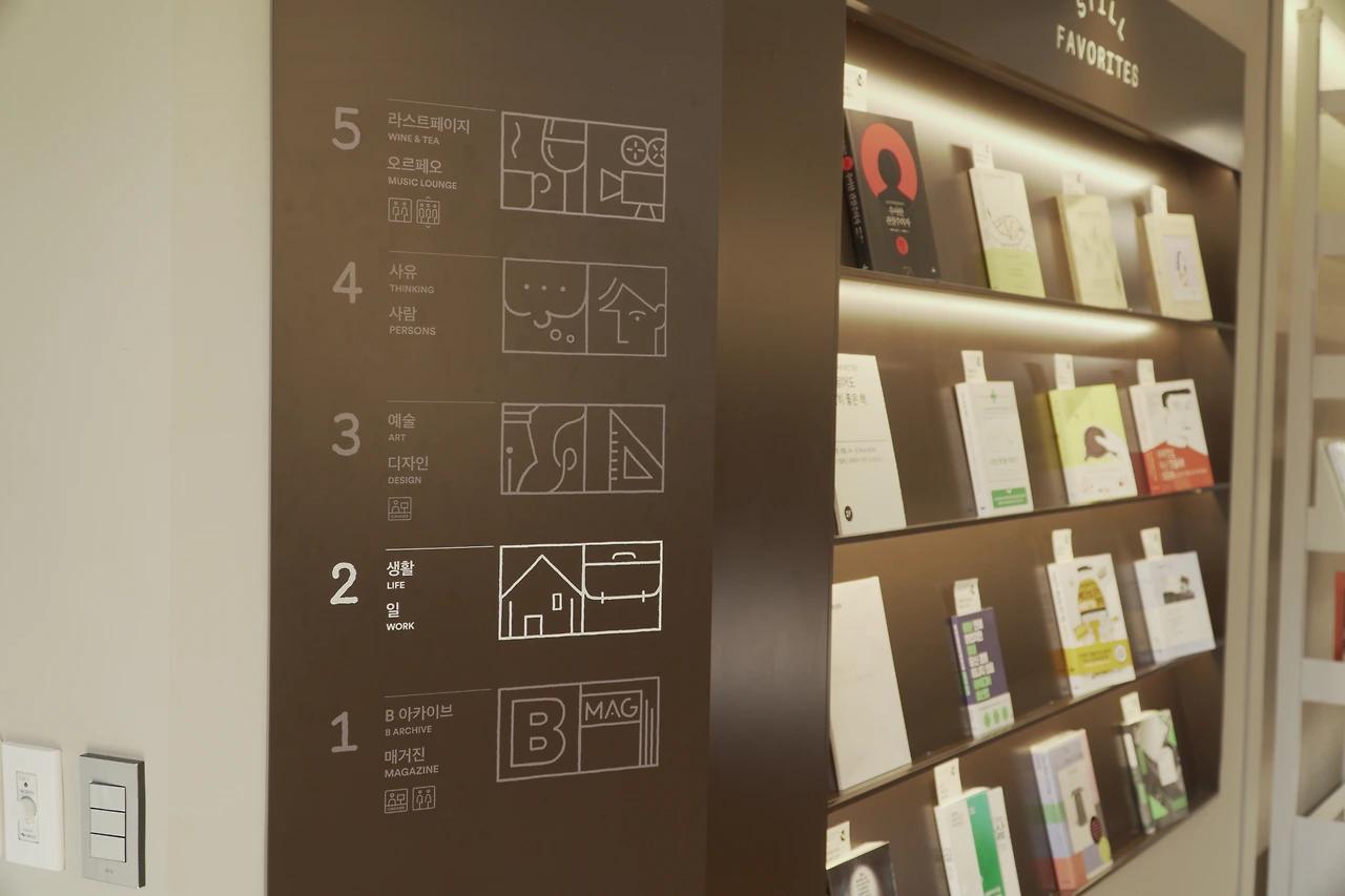 독립 서점답게 일반 서점과는 다른 구조다. 1층은 매거진, 2층은 라이프스타일, 3층은 예술, 4층은 인문학 등으로 층간 큐레이션도 돼 있는 상태고, 층마다 전시된 책들도 세부 테마와 관심사에 맞게 자리하고 있다. 취향을 제안한다는 일본의 츠타야를 연상시키기도 하지만, 동선과 공간에 대한 경험은 스틸북스가 츠타야 서점보다는 조금 자연스러웠다.