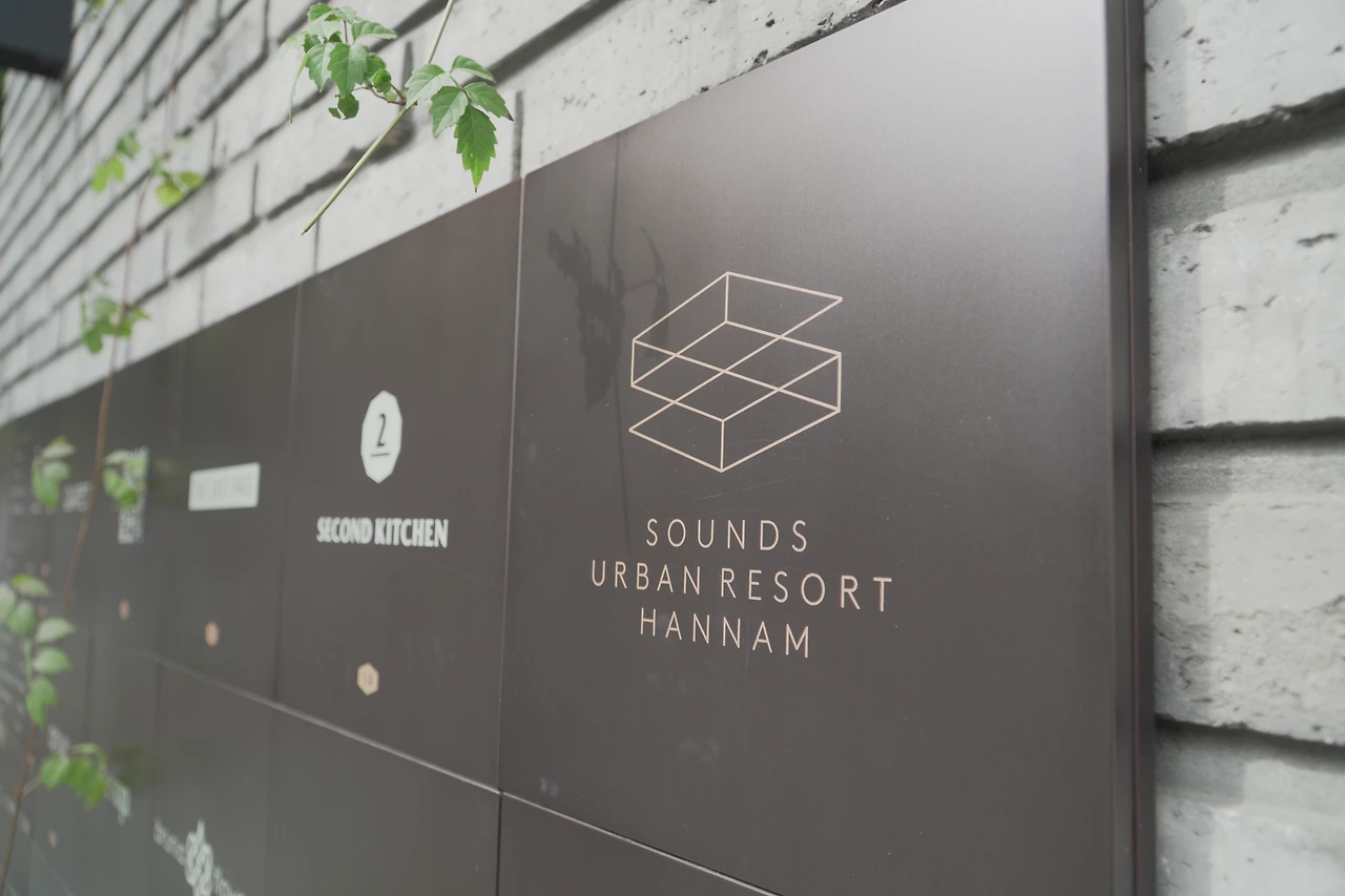 다소 좁고 복잡한 한남오거리 골목을 걷다 보면 불현듯 '여기 들어가도 되나?' 싶은 공간이 나타난다. 이미 인싸들에게 핫플레이스가 된 사운즈한남이다. '도시 속 리조트'를 표방하는 공간인만큼, 빼곡히 들어선 건물들을 보며 생기는 피로감을 씻을만한 한적한 공간 경험을 제공하는 곳이다.
