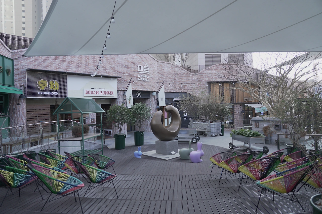 엘리웨이 광교는 이런 식으로 다른 곳에서는 볼 수 없는 공간 경험을 여기저기서 제공하고 있는데, 마슬 마켓을 이야기하지 않을 수 없다.