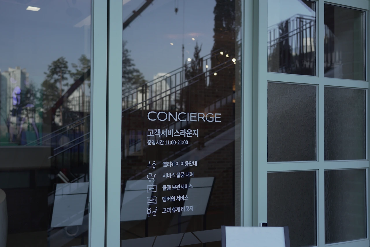 대기업 쇼핑센터나 럭셔리 호텔에서만 볼 수 있는 엘리웨이 광교의 컨시어지 서비스 창구는 사뭇 어색하다. 여러 공간적인 고민과 함께 사실 이 컨시어지 서비스 또한 엘리웨이 광교가 지향하는 모습을 보인다.