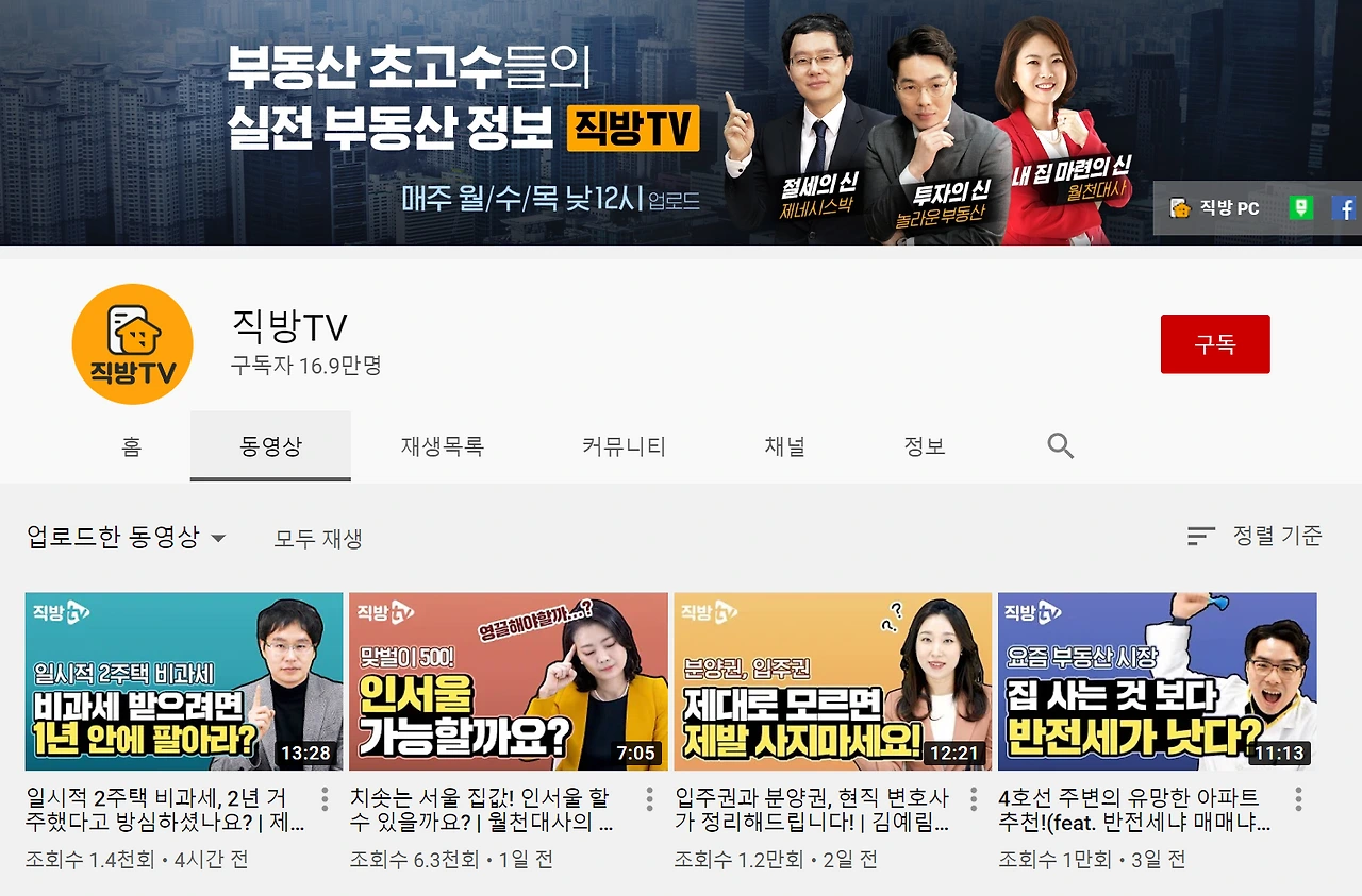 '부동산'이라는 키워드를 두고 다양한 활동을 벌이는 직방을 보고 있자면 부동산 산업의 '미디어' 역할을 자처하는 것 같은데, 실제로 현재 '미디어'로 인식할만한 다양한 채널에 부동산과 관련된 다수의 콘텐츠들을 배포하고 있습니다. 부동산에 대한 국민 정서를 고려했을 때 상당히 도전적이고 큰 그림을 그리고 있다는 느낌을 받습니다.