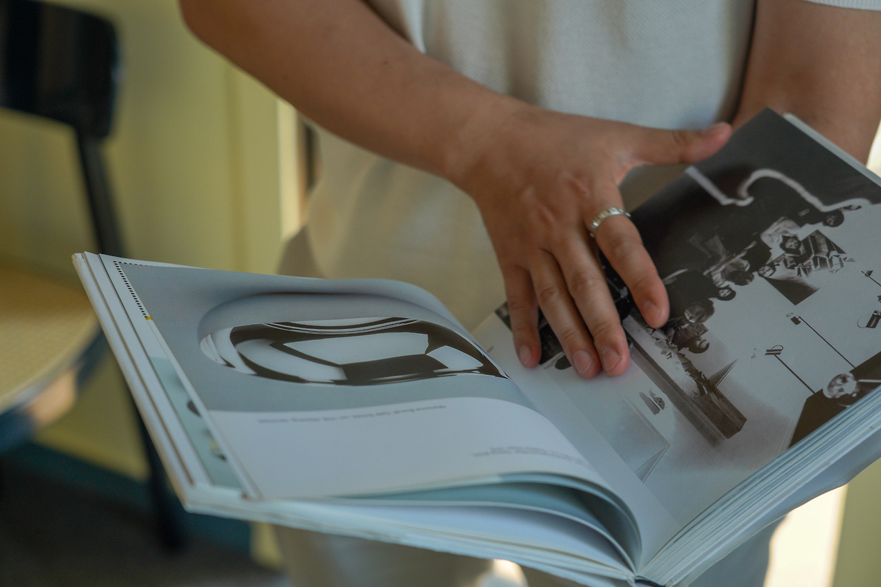 바우하우스 관련 사진과 자료를 놓고
