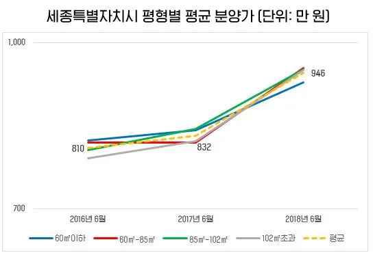 오리혀 세종시는 평형대가 증가할수록, 분양가가 더 크게 증가하는 특이 현상을 보입니다. 가장 상승률이 높은 평형대는 102㎡ 초과 평형 대입니다. 이미 가정이 있어 자녀가 있는 세대가 상대적으로 저렴한 분양가의 아파트의 넓은 평형을 선호한다는 건설사의 판단이 있었던 것 같습니다. 실제로, 세종시에서 넓은 평형대에서 맘 편히 거주하는 3인 가족도 많다고 하네요.
