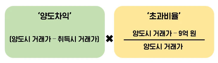 1주택자지만 9억 원 이상 주택 거래 시 발생하는 양도소득세는 아래와 같이 간단하게 계산할 수 있습니다.