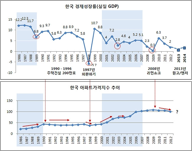 이유는 2019년부터 국내뿐만 아니라 글로벌 경기 침체 신호가 감지되고 있기 때문입니다. 집값 안정화는 정책보다 거시 경제의 영향을 더 받는다는 것을 1997년 IMF, 2003년 카드대란, 2008년 글로벌 금융위기 등을 통해 꾸준히 경험하고 있습니다. 2005년 종합부동산세 정책은 단기간 효과가 있었다는 주장도 있지만, 실제로 카드대란이라는 거시 경제 이슈때문이라는 분석도 많습니다.