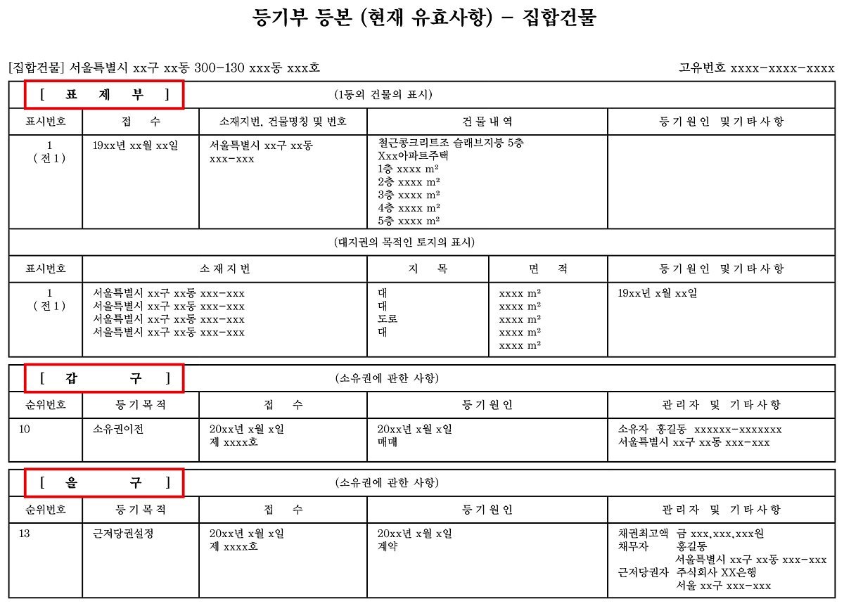 등기부등본 확인은 가장 중요한 순서입니다. 일반적으로 등기부등본은 부동산 사장님이 알아서 떼 주십니다. 보통은 부동산 사장님이 등기부등본을 같이 보면서 차근차근 설명해 주시는데요, 스스로도 조심할 부분이 뭔지 알아야 하기 때문에 몇 가지만 언급하겠습니다.