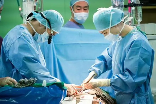 우선 수술복과 수술 모자, 마스크, 수술 신발로 환복하고 수술장 안으로 들어갑니다. 제가 수술할 환자가 마취되어 있는 방으로 들어가서 환자의 의무기록지, 영상의학 검사 자료를 다시 한번 확인합니다. 그리고 수술장 앞의 후드에서 스크럽을 합니다. 그다음은 드라마에 나오는 대로 그런 과정을 거칩니다. 하지만 극에서처럼 수술을 도와주는 전임의, 전공의와 간호사들이 임금님 모시듯 벌벌 떠는 것은 아닙니다. 수술복을 입으면서 안부 인사도 하고 때로는 농담도 하면서 서로 긴장을 풀려 노력합니다.