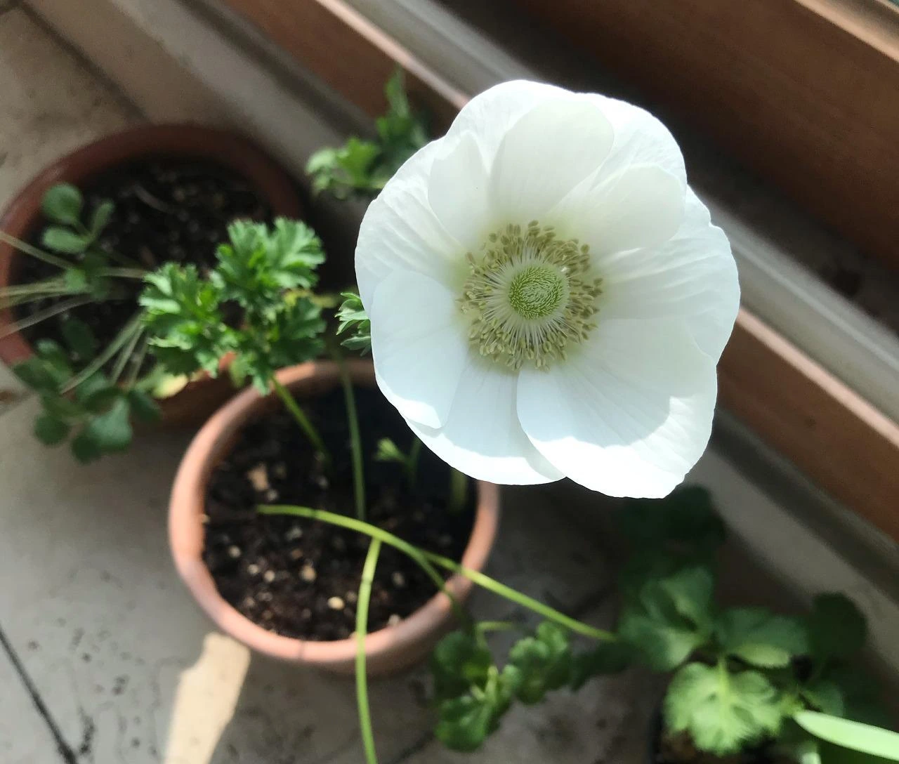하지만 아네모네라는 꽃이 어떻게 생겼는지는 전혀 몰랐다. 아마 첨에는 꽃인 줄도 몰랐던 것 같기도 한다. 식물에 관심을 갖게 되고, 매년 가을이면 구근을 심어야지, 하고 생각하게 되기까지는. 매년 가을, 인터넷 사이트를 뒤적이는 구근 쇼퍼가 발견한 아네모네는 생각보다 정말 아름다웠고, 무엇보다 가성비 좋았다. 한 송이가 피면 오래 가고, 다른 꽃몽우리가 계속 올라왔다.
