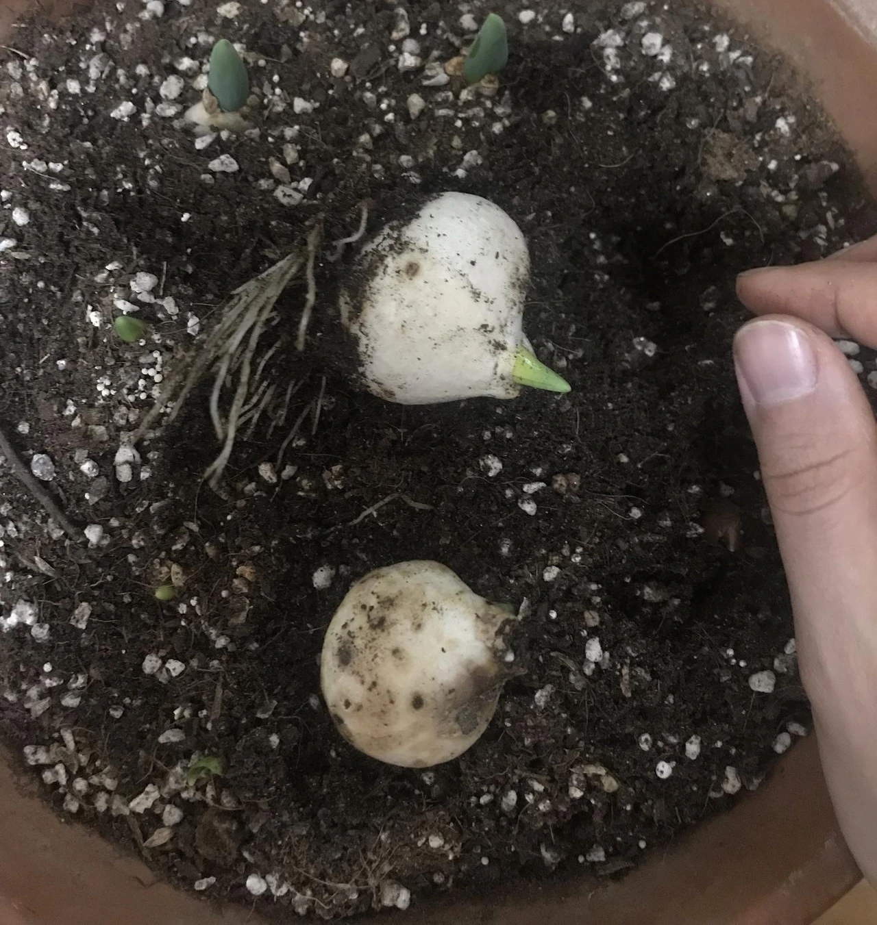 멀쩡하게 싹이 올라온 구근도 파본다. 비교를 해봐야 하니까. (사실 싹 아래가 궁금해. 파보고 싶어서 안달 났다.)