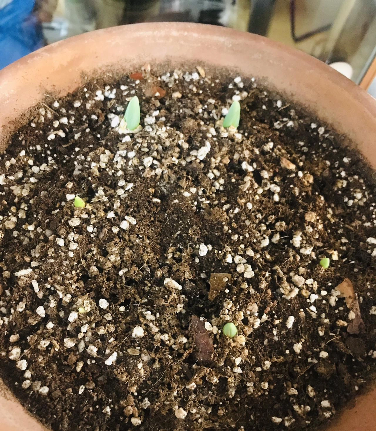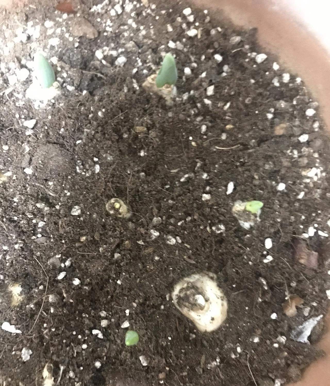 다들 조매난 싹이 올라왔는데, 싹이 날 기미도 없이 수상하게 누런 색의 구근이 있다. 싹이 올라오는 그 구멍에 흙만 잔뜩 끼어 있다.