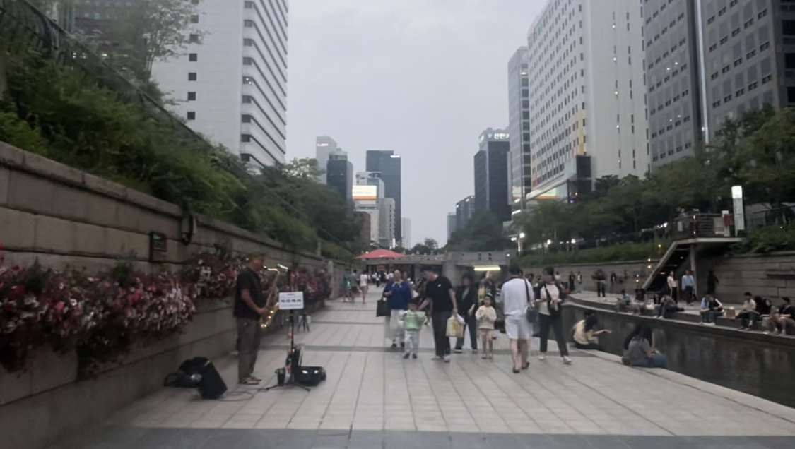 옆을 보니, 내 옆에 서 있는 다른 사람들이 보입니다.