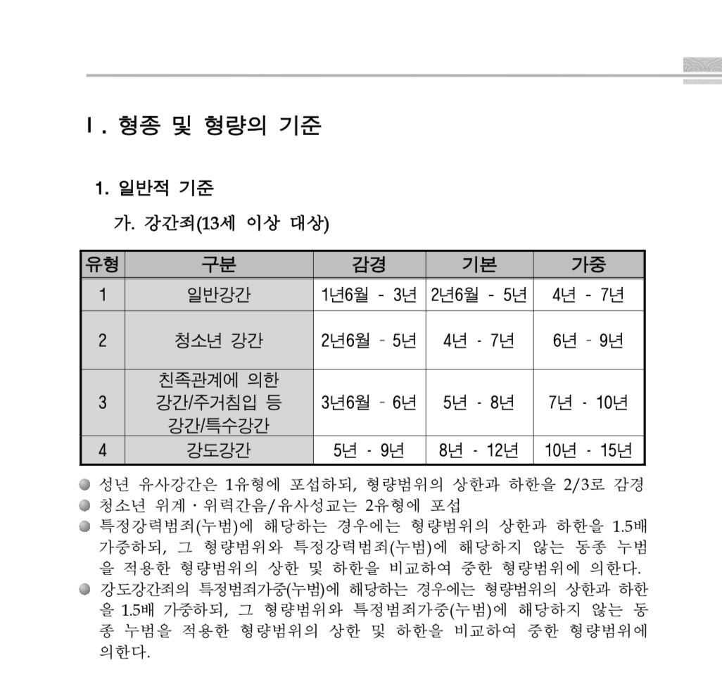 법관은 개별사건에서 양형위원회가 정한 양형기준을 참고해서 형량을 정합니다.