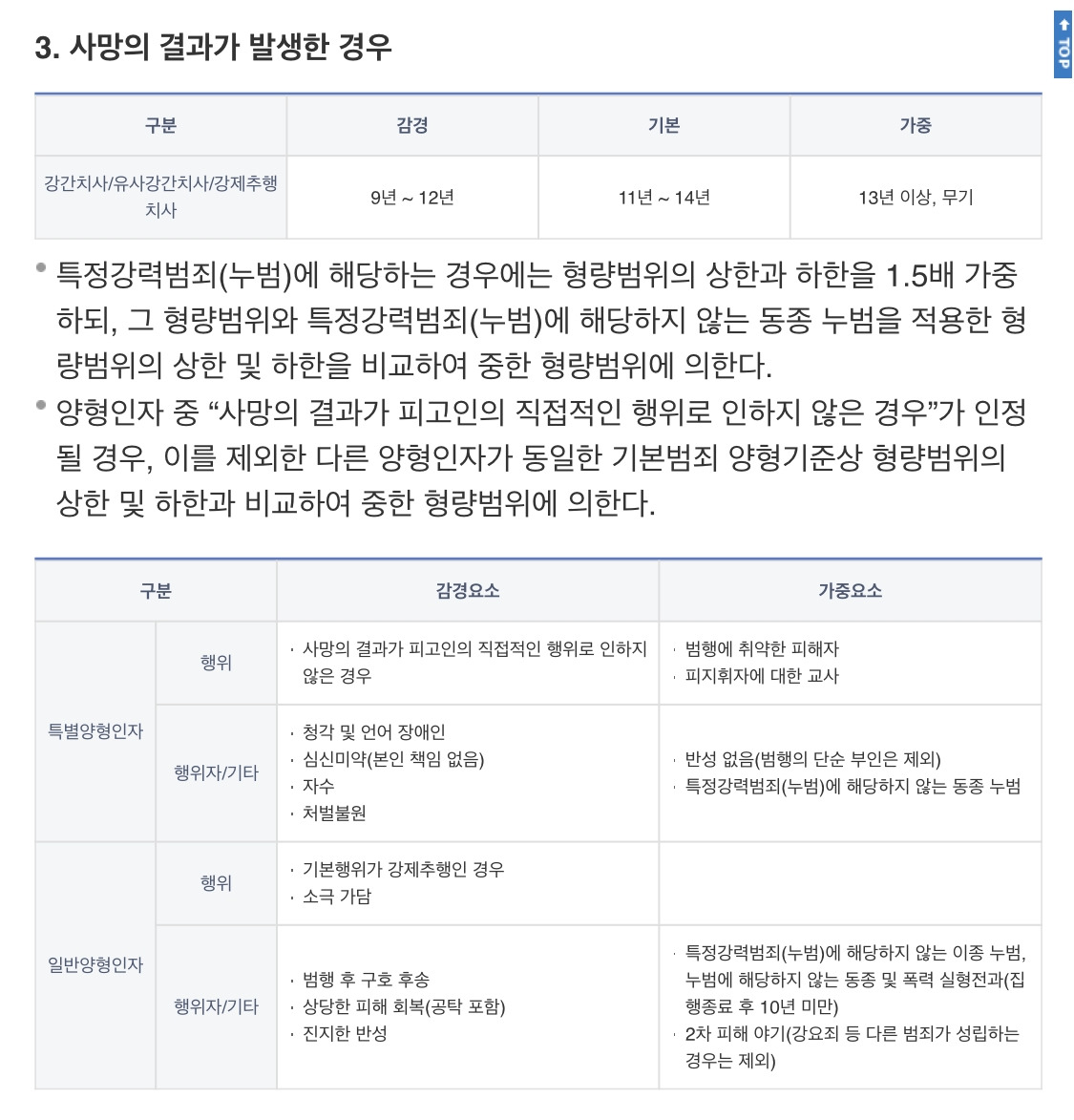 강간살인은 살인범죄 양형기준 중 “중대 범죄 결합 살인”에 포함됩니다.