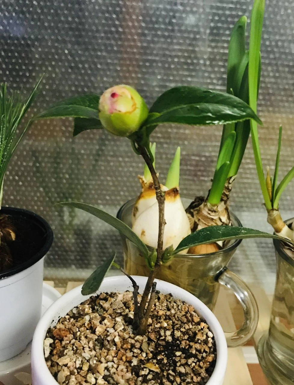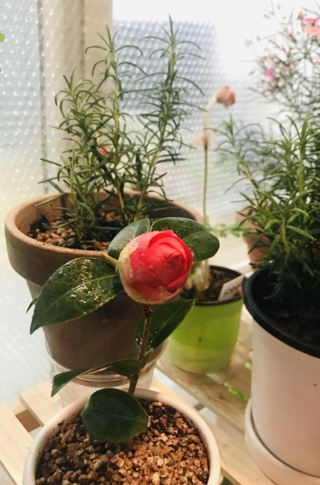 원래 동백은 거제도나 제주도 같은 바닷가 근처에 군락을 이루고 사는 것이 그런 동백의 성질 때문이겠지. 건조해서 저 가녀린 꽃망울이 똑, 하고 떨어져 버리면 안되는데. 비닐 봉지로 하우스를 만들어 줄까 싶기도 하다. 간이 비닐하우스지만 철사 서너 개를 화분 끝에 박아 넣고 비닐 봉지를 위에 뒤짚어 씌우기만 하면 될 것 같다.