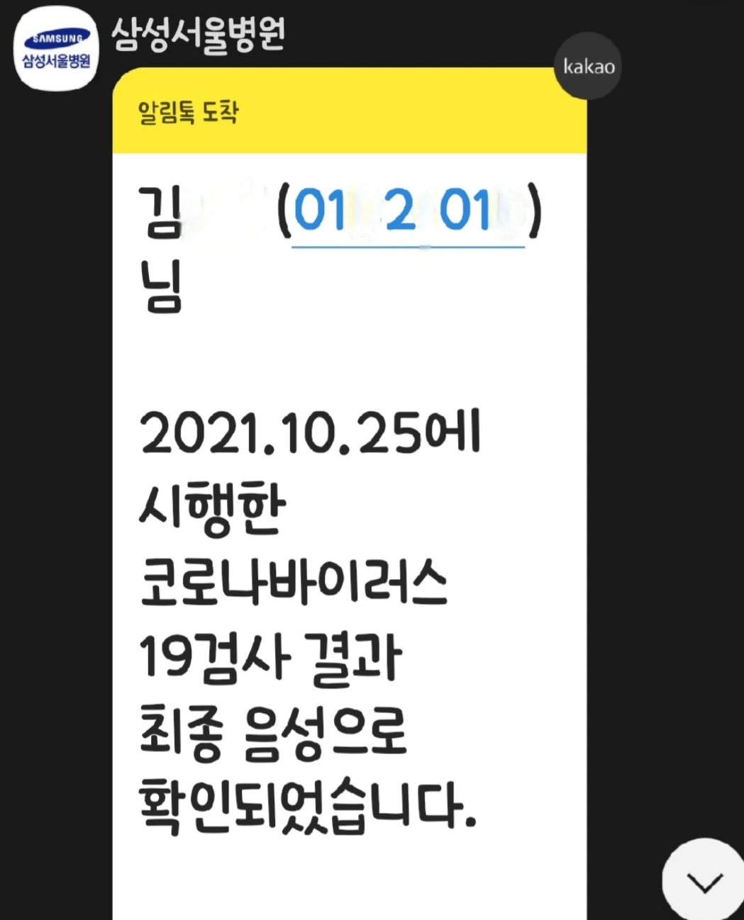 24일 늦은 밤에 검사한 코로나 결과입니다. 이름과 등록번호 일부는 삭제했어요^^.
