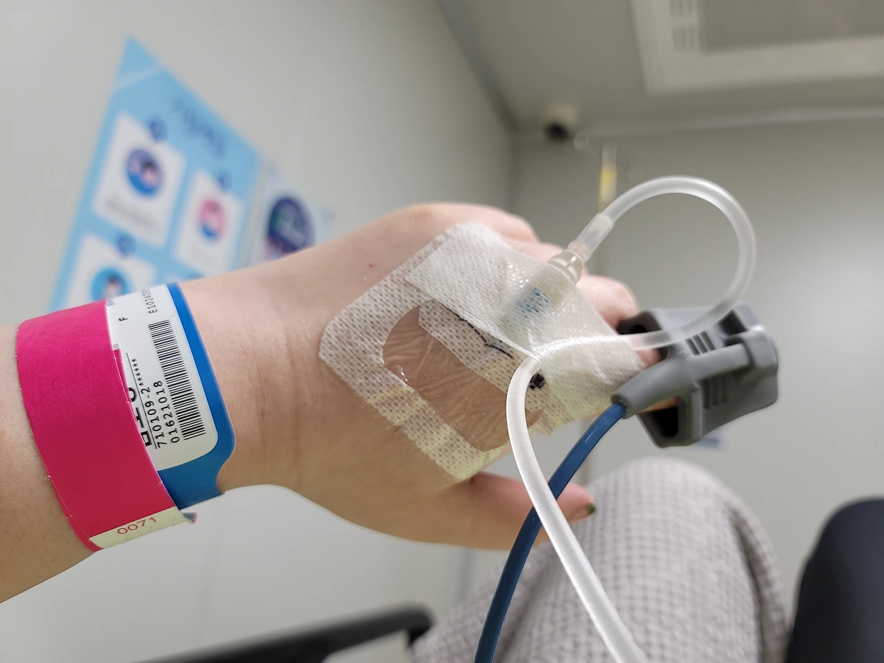 응급실의 만행!!-손등의 손가락 사이의 제일 연하고 아픈 부위에 놓은 주사.