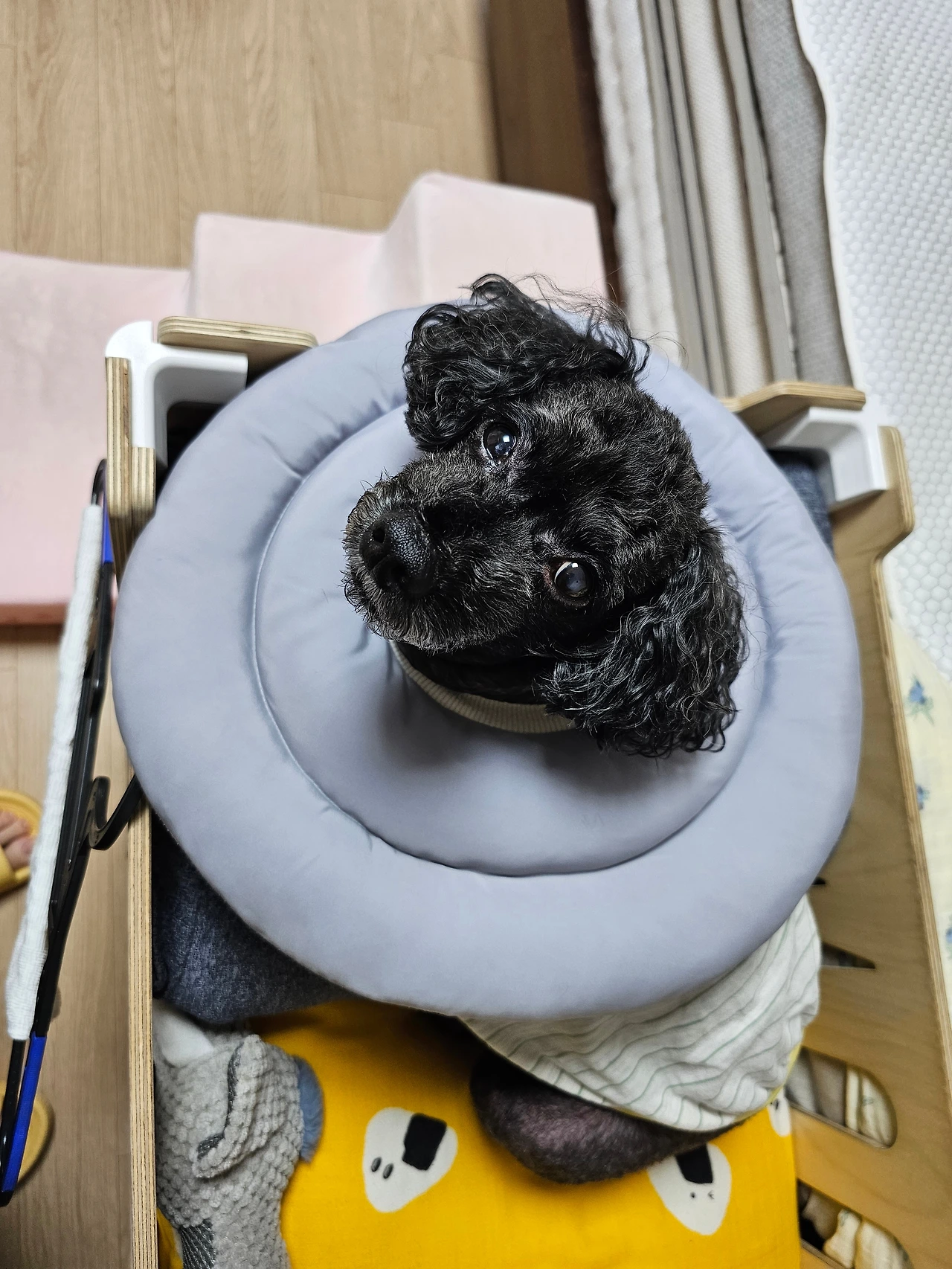 작년 10월 이후로 일년 가까이 산책할 때를 제외하곤 넥카라를 차고 있었어요 얼마나 고생했는지...