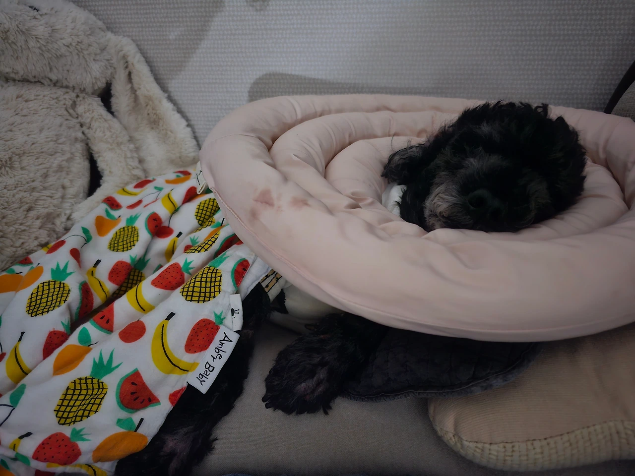 언제 다시 재발하여 고통스러운 시간을 보낼지 알 수는 없지만 콩이가 노환과 지병을 잘 이겨내고 우리와 오래도록 행복하게 살도록 노력하고 싶다.나이 든 나의 강아지 아들을 오래 보고픈 마음이다.