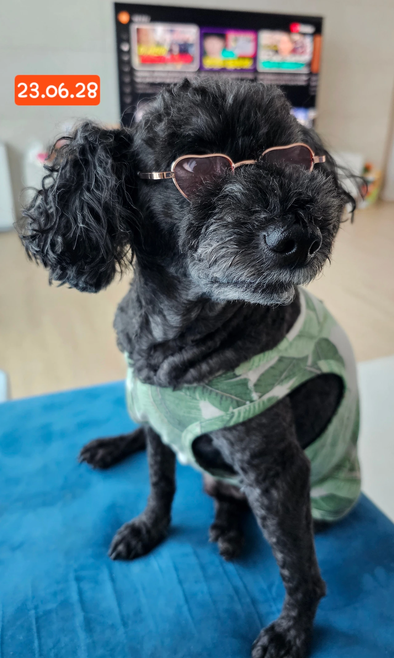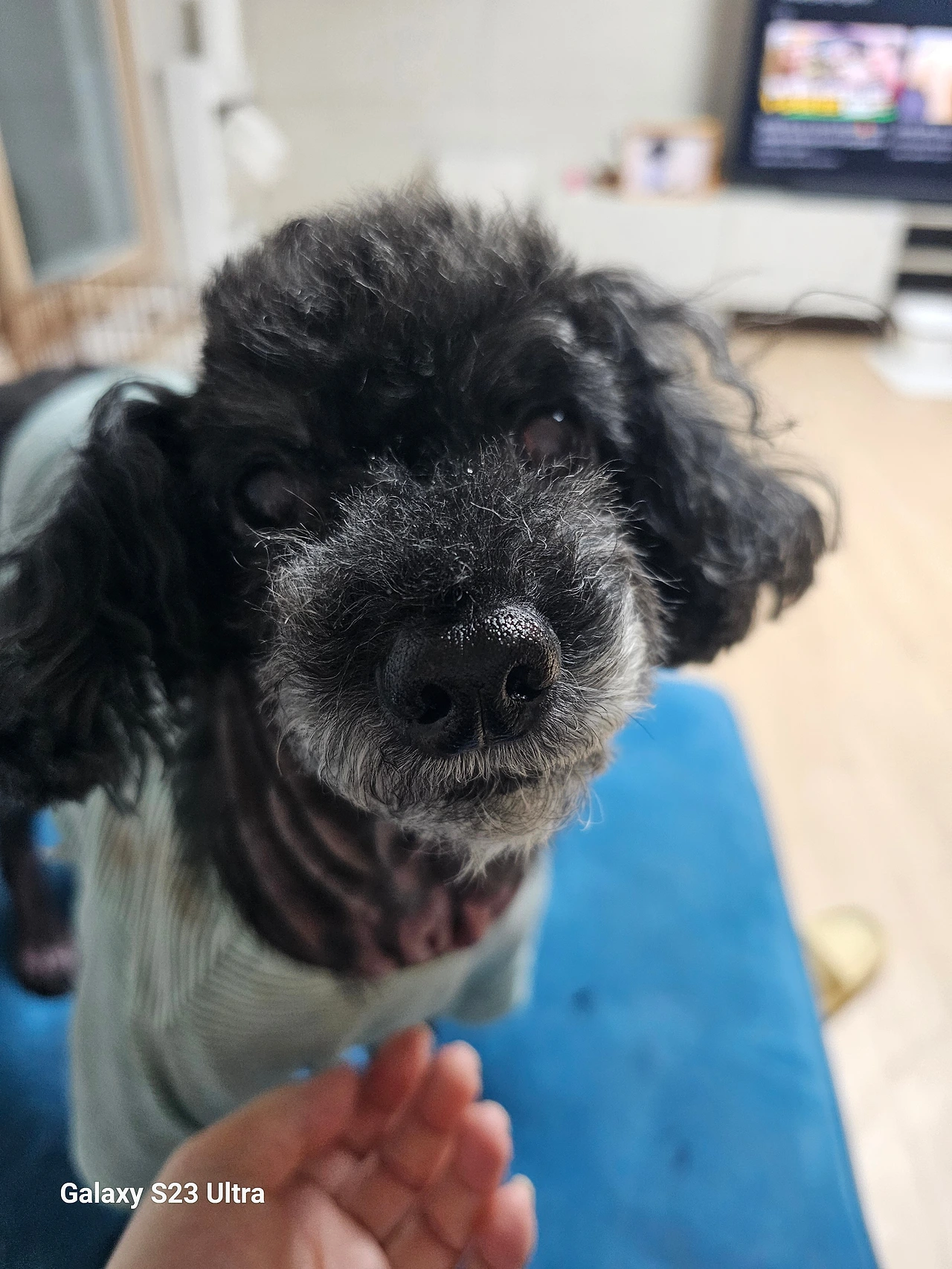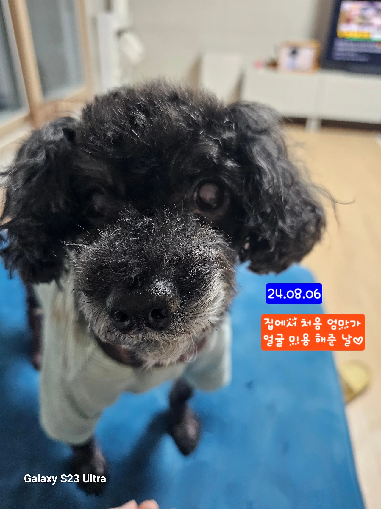 다행히 바꾼 항생제가 잘 맞는지 2주 전부터는 넥카라를 벗을 수 있게 됐고 많이 지쳐 힘든 콩이를 미용 보낼 수 없던 제가 불편한 손이지만, 그리고 모자란 솜씨지만 처음으로 얼굴 미용도 해줬어요.