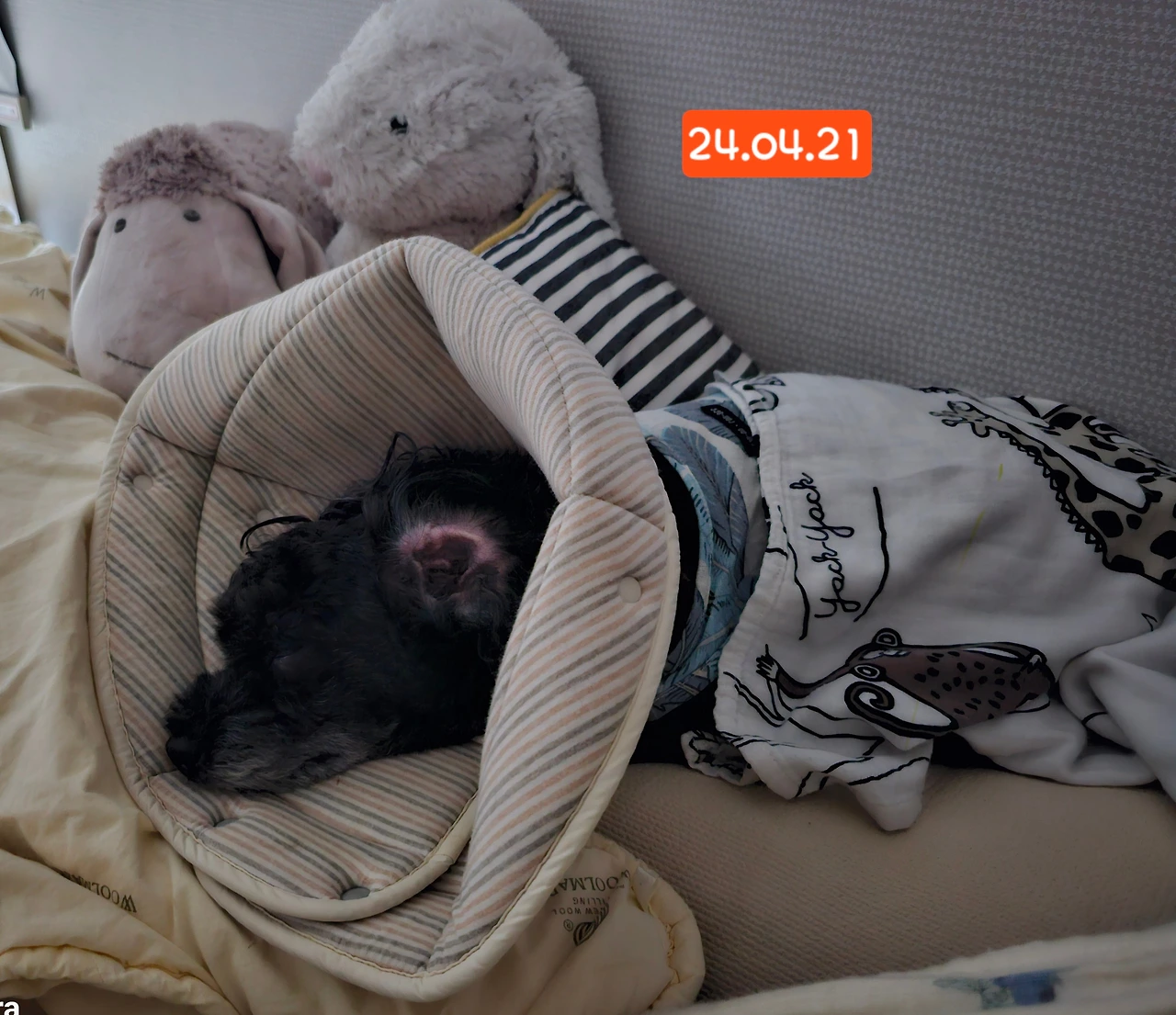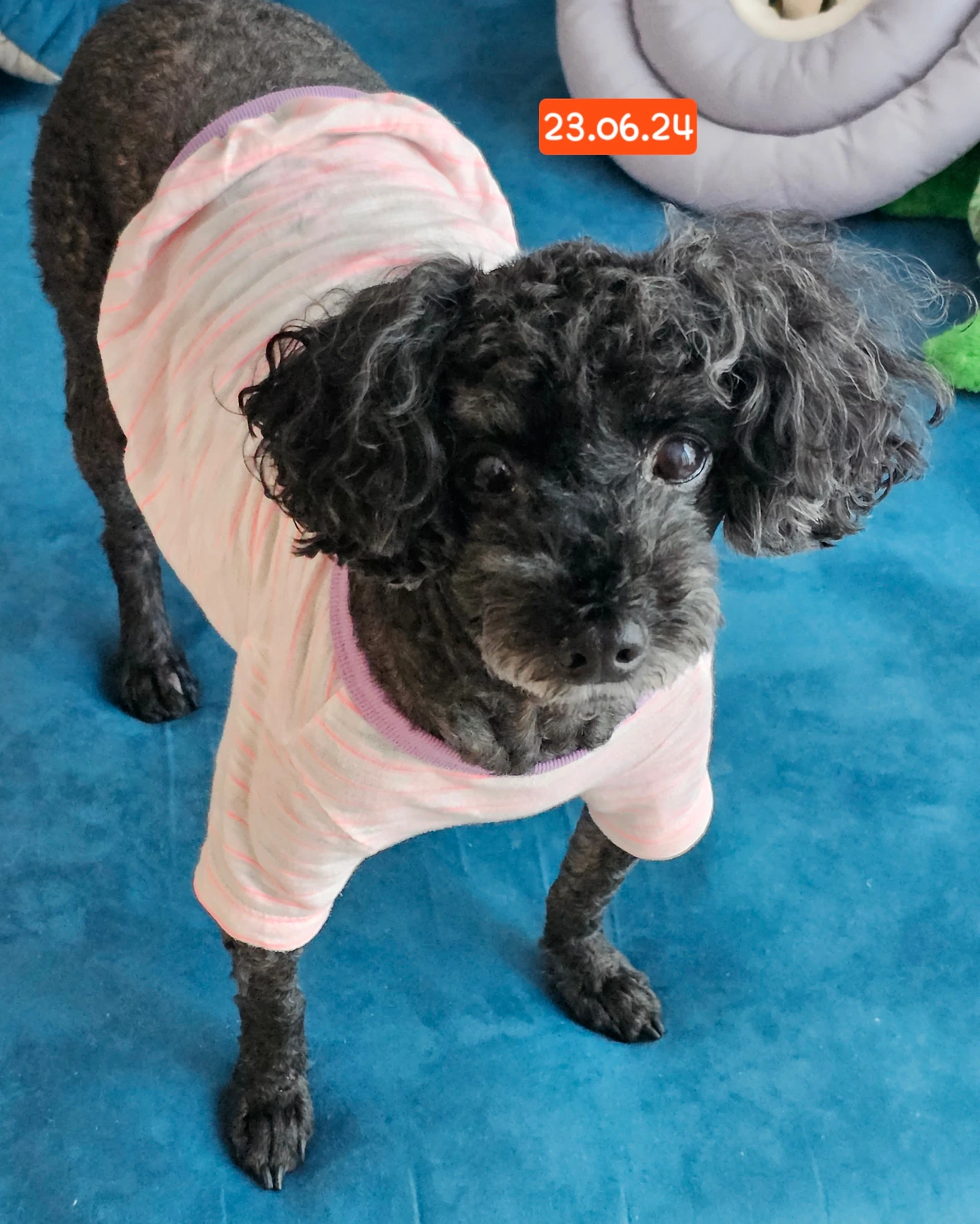 좋다는 병원은 다 다녔고 결국 피부전문 병원을 찾아 온갖 검사를 다하고 새끼 때부터 있던 아토피 이슈 때문에 항상 주의하던 사료와 간식도 더 주의에 주의를 기울이며 케어했지만 아무 소용이 없었어요. 콩이는 작년 10월 이후부터 얼마 전까지 열 달 동안 넥카라를 목에 걸고 살아야 했고 저는 콩이 각질과 콩이에게 입혀뒀던 피 묻은 옷, 작은 이불, 패드 등을 모두 손빨래하며 사투를 벌여야 했어요.