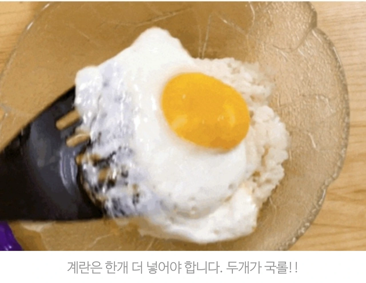 그리고 노른자가 터지지 않고 흰자를 태우지 않게(흰자가 낭창낭창하도록, 노른자는 피만 살짝 익도록) sunny side up으로 계란을 익혀, 미리 퍼놓은 밥 위에 살짝 올려놓고(이때 절대로 노른자가 터지면 안 된다. 그리고 계란은 무조건 2개!), 여기에 간장과 통깨, 그리고 참기름을 넣고 잘 비벼준다. 그러면 익지 안 았던 노른자와 낭창낭창한 흰자가 뜨거운 밥과 어우러져 적당히 촉촉해진 데다 고소한 참기름 냄새까지 진동하는 간장 계란밥이 된다.
