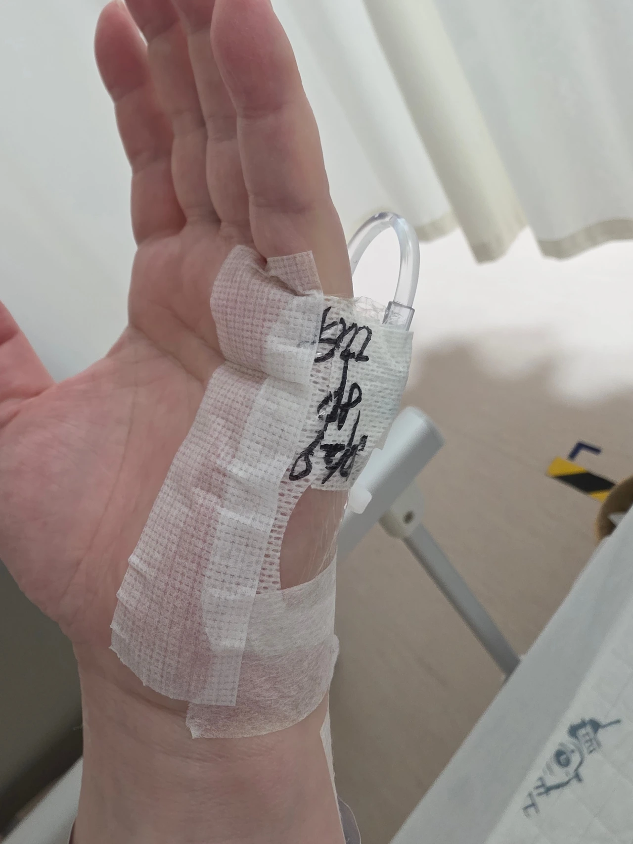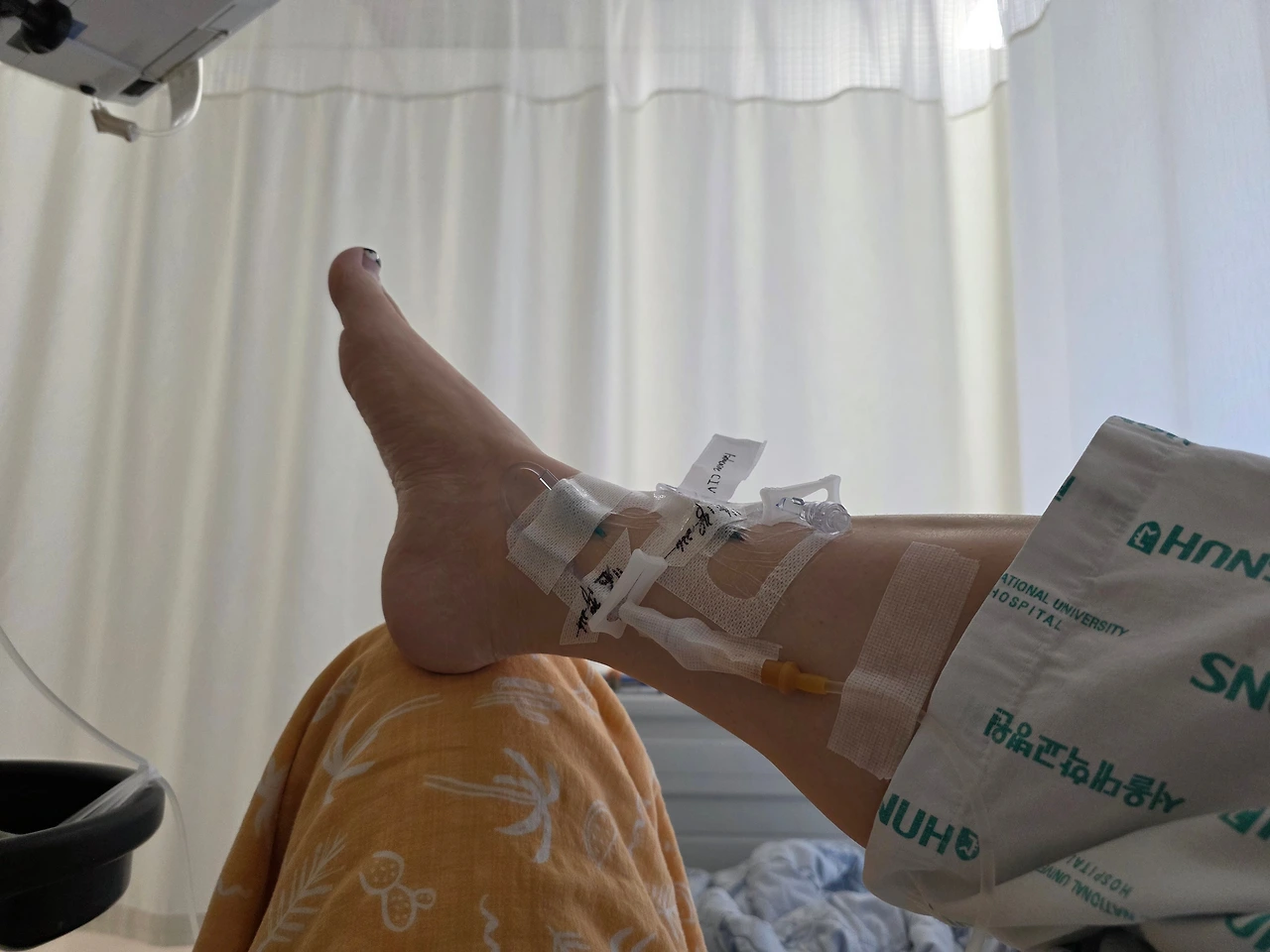 혈관이 터지고 팔이 부어 다리에 다시 line을 잡을 수 밖에 없었어요.