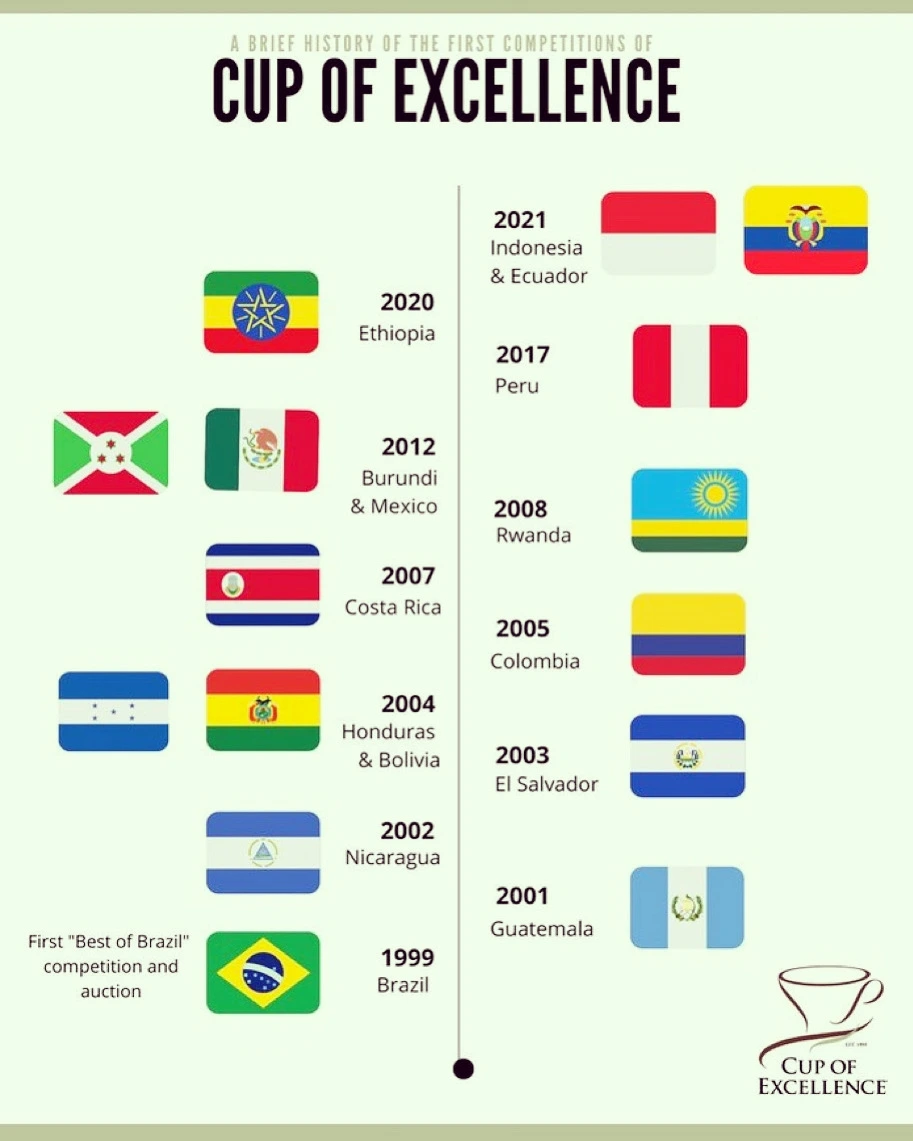 컵오브엑셀런스(Cup of Excellence, CoE) 참가국가.
