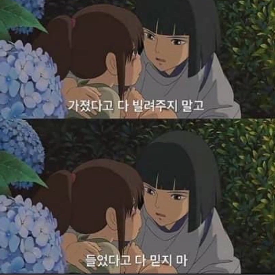 영화 ‘센과 치히로의 행방불명’에서 남자 주인공 '하쿠'가 여자 주인공 ‘센’한테 포스팅한 사진 같은 이야기를 들려줄 때 공자와 안연의 ‘인’에 관한 대화와 세 마리 원숭이 이야기가 같이 떠올랐다. 미야자키 선생도 같은 생각에서 출발하지 않았을까.