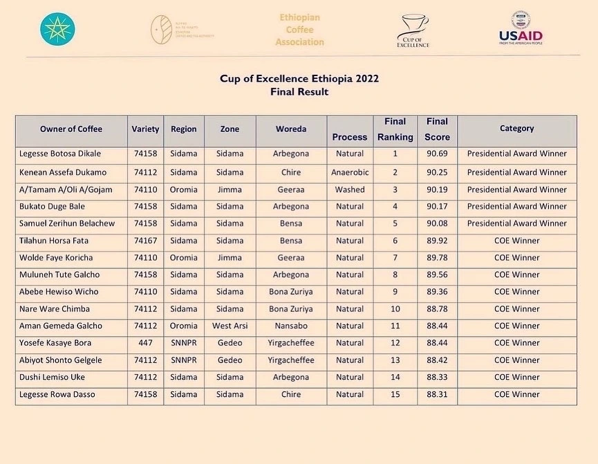 [2022 Cup of Excellence Ethiopia Final Results]