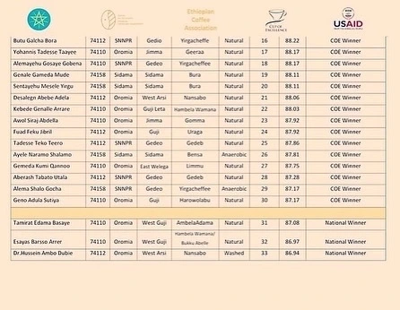 2022 컵오브엑셀런스 에티오피아 최종결과가 발표되었습니다. 1위부터 30위까지는 컵오브엑셀런스(이하 CoE) 위너 리스트이며 31위부터 40위까지는 내셔널 위너 리스트이니 참고하시기 바랍니다.