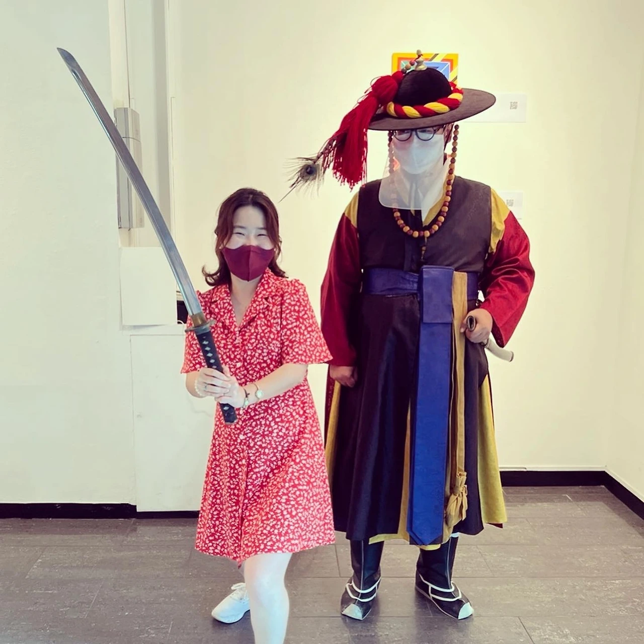 지난 주말 평화로운 전시장에 이순신(?) 장군이 등장했습니다. 인사동에 볼만한 전시가 있을 때 저런 복장으로 등장하신다고 하네요. 전시장에 있던 분들과 잠깐 다른 세상에 다녀온 느낌이었습니다.