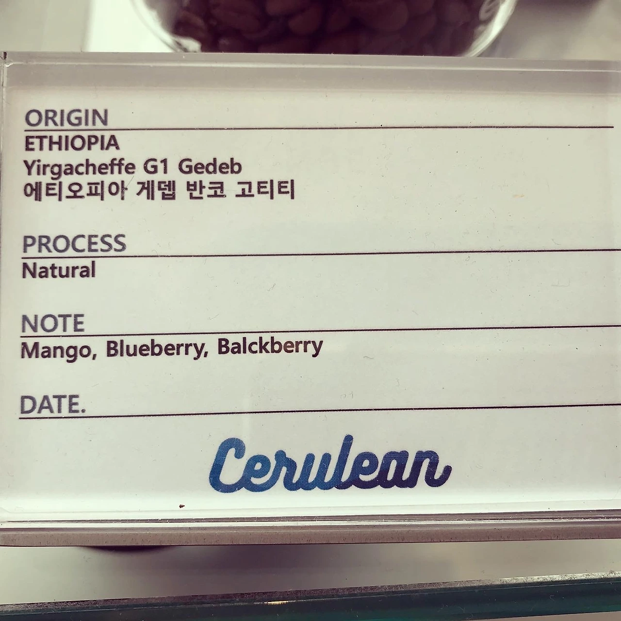 인사동에는 확실히 맛있는 찻집이 많아 굳이 커피를 찾아 마시지는 않았던 것 같다. 지나가다 우연히 들렀는데 스페셜티 카페 분위기의 인테리어(?)에 메뉴도 그렇게 구성된 곳이었다. 세루리안 인사. 에티오피아 게뎁의 반코 고티티를 필터로 주문해 마셨다. 게뎁은 이르가짜페(Yirgacheffe) 커피가 생산되는 게데오존에 있는 지역 이름이다. 반코는 ‘번개’, 고티티는 ‘폭포’라는 의미를 가지고 있다. 에티오피아의 맛있는 싱글오리진 지역 중에 ‘반코’가 들어가는 커피 생산지가 몇 군데 있다.