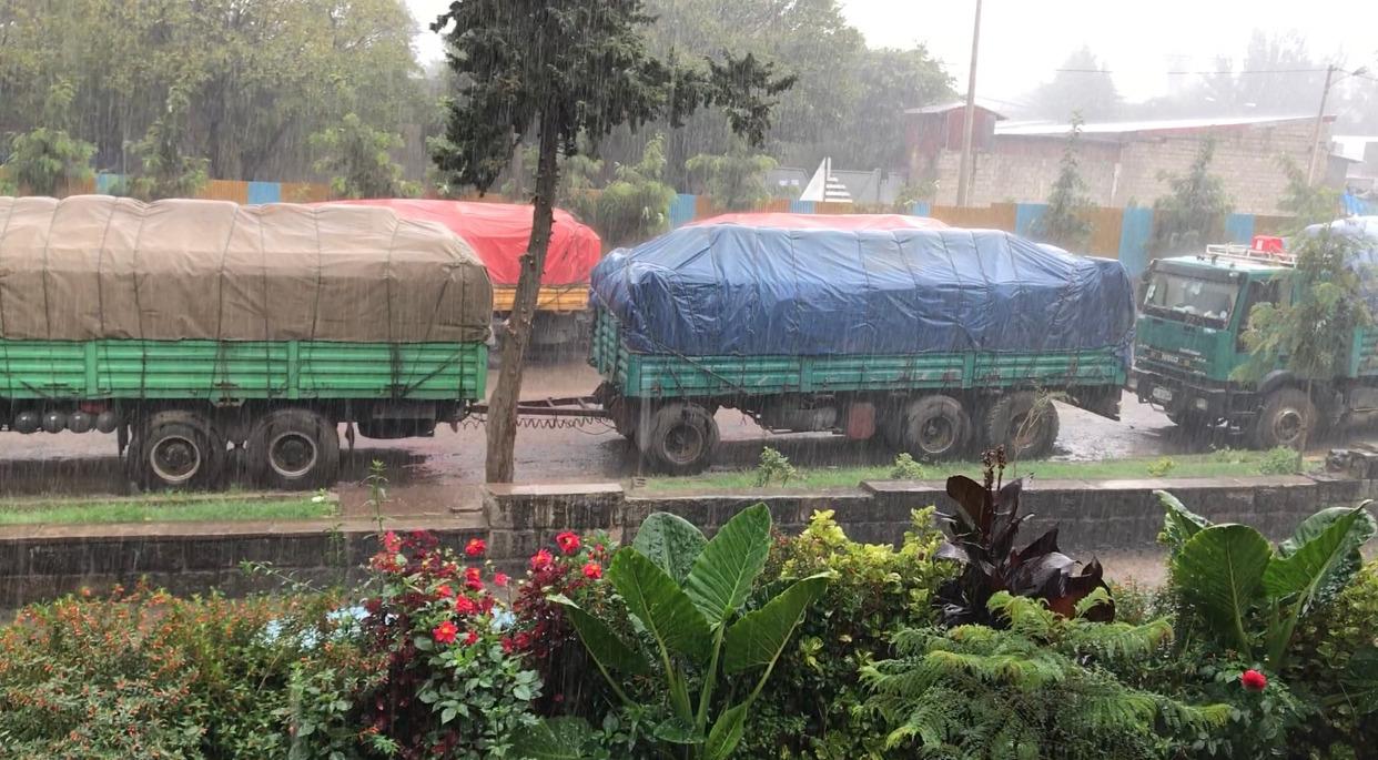 사진에 보이는 트럭에는 수출용 커피가 실려 있습니다. 커피 수출여부를 결정하는 에티오피아 정부기관의 커피 랩실에서 바라 본 풍경입니다.