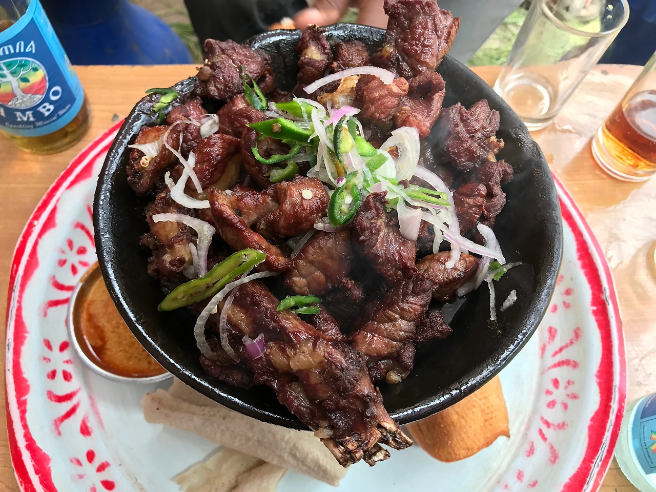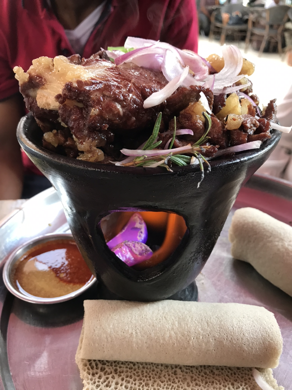인기 있는 고기 요리 중에 샤클라 뜹스(Shekla Tibs, ሸክላ ጥብስ)라는 게 있다. 우리나라 신선로처럼 그릇에 불이 따라오는 에티오피아의 대표적인 고기 요리이다. 고기 요리 좋아하는 사람들은 사진만 봐도 군침이 돌지 않나.