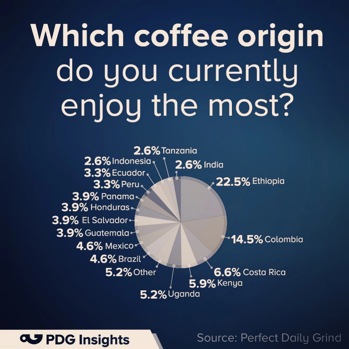 여기서 어떤 커피생산국 커피를 현재 가장 즐기는지 서베이를 했는데 포스팅한 이미지는 그 결과입니다.