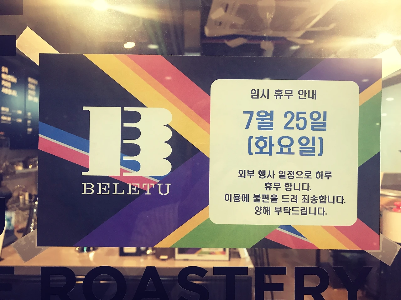 사업 시작하고 평일에 문을 닫은 적이 한번도 없는데 이번에 그렇게 되었으니 양해 부탁드립니다.