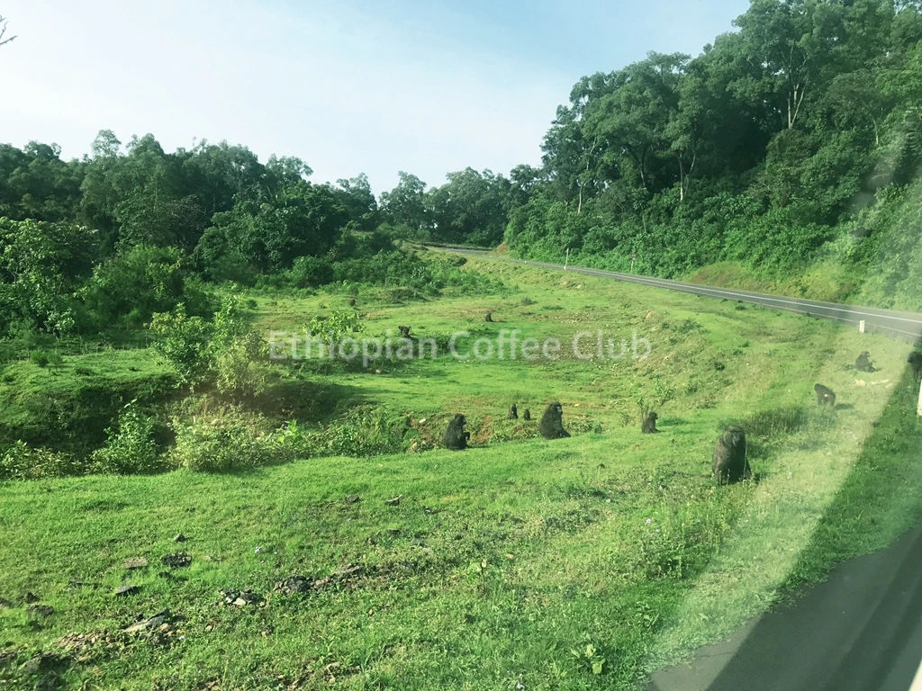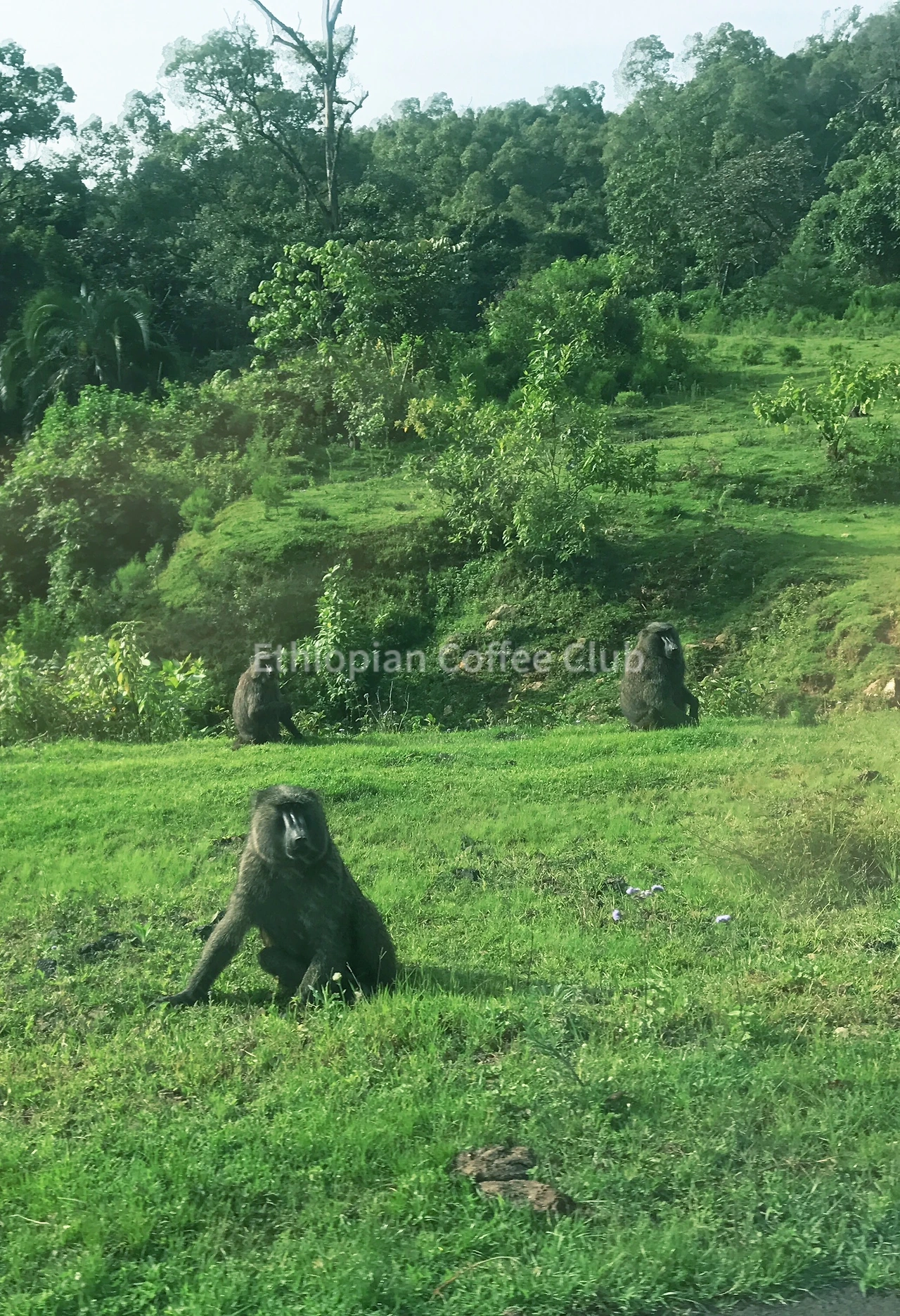 에티오피아 지역에서 만나는 원숭이과 동물은 여러 종류인데 카파 지역에서는 특히 다양한 원숭이과 동물을 만날 수 있다. 사진의 개코원숭이는 짐마에서 카파 가는 길에 한 군데, 미잔에서 카파 가는 길에 두 군데의 출몰지역이 있다.