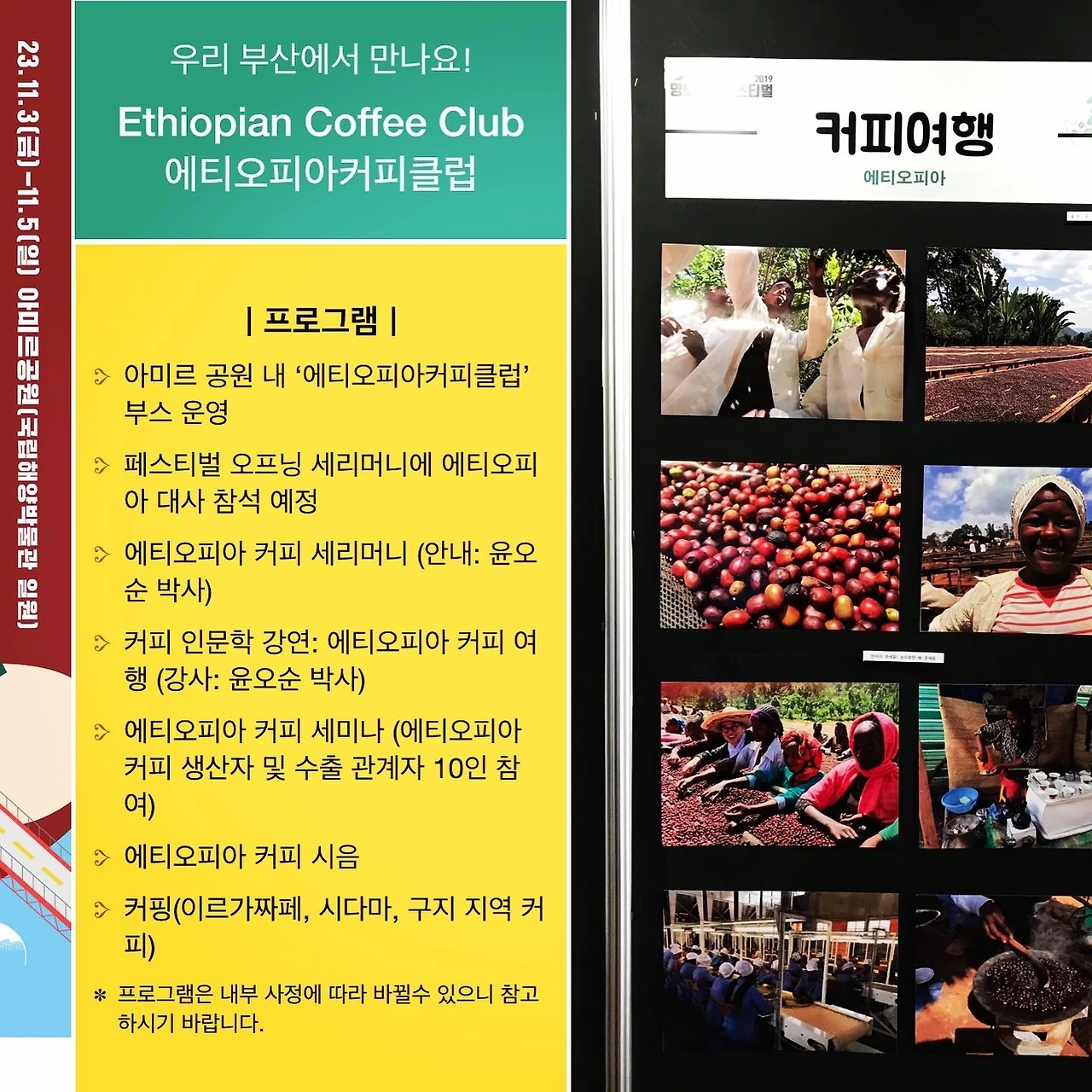 11월 5일 일요일 오후 2시에서 6시까지 부산 글로벌 영도 커피 페스티벌 행사장 내 돔 세미나실에서 같이 부산에 내려가는 에티오피아 친구들과 에티오피아 커피 세미나를 진행하려고 준비 중입니다.