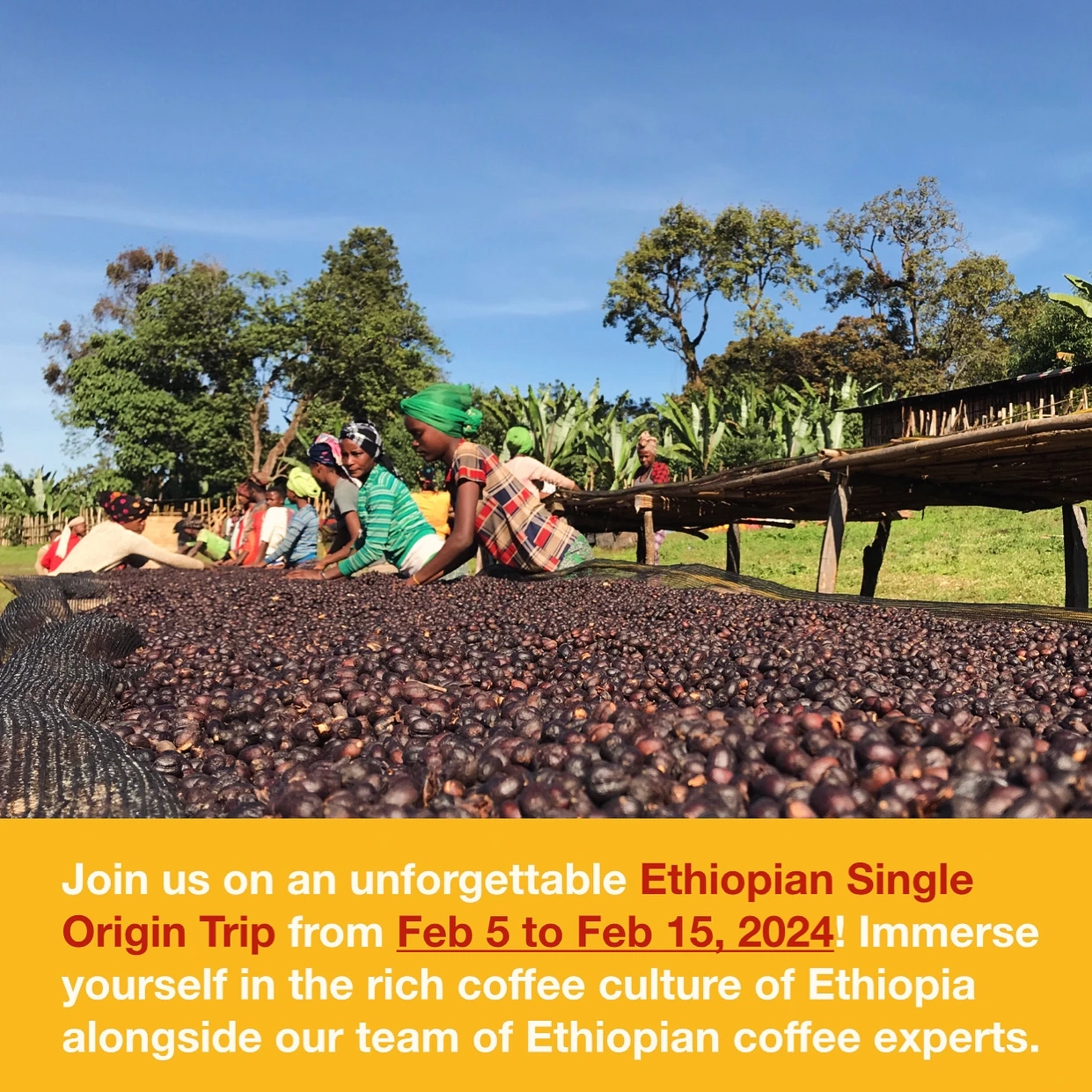 情報が追加されるたびに再度更新します。エチオピアコーヒーツアーを計画中の方々は、2024年2月5日から15日までの10日間のプログラムにご興味を持っていただければと思います。私ももちろん、エチオピアのコーヒーの専門家としてツアーに参加します。