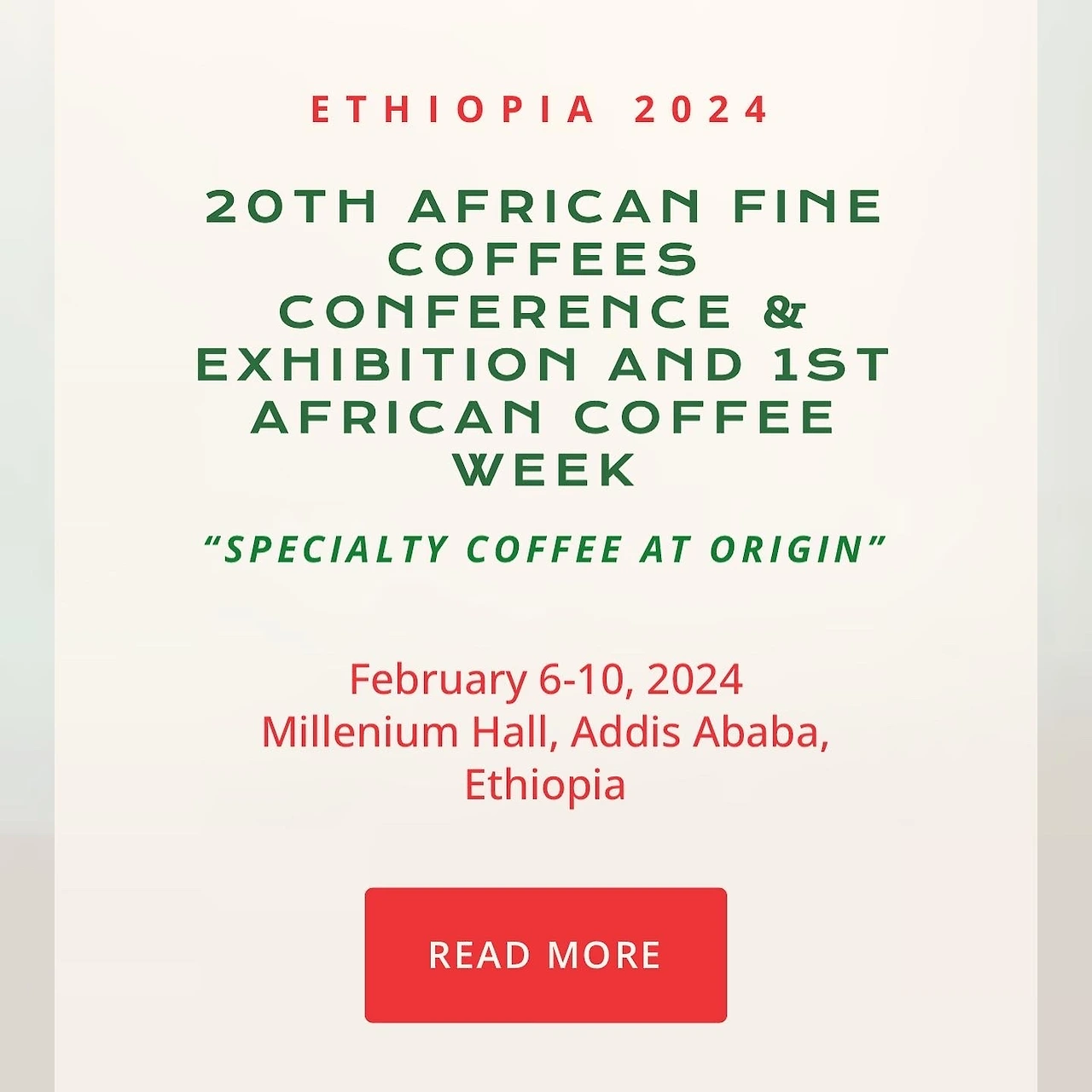 아프리카 대륙에서 열리는 가장 큰 규모의 커피 박람회인 AFCA (아프카·African Fine Coffees Conference & Exhibition)가 2024년 2월 6일부터 10일까지 5일간 에티오피아의 수도 아디스아바바(밀레니엄 홀)에서 개최됩니다.