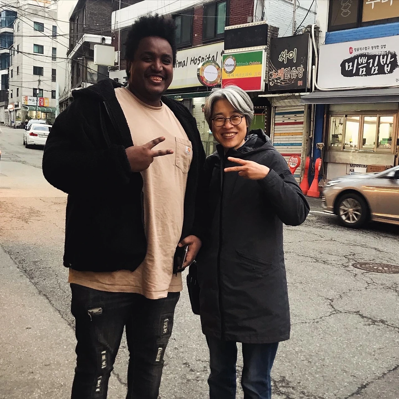 사진 속의 키 큰 아저씨는 에티오피아 식당 사장님이고 한국말을 엄청 잘 해요. 내가 마곡에서 벨레투(Beletu)라고 하는 에티오피아 커피 전문점을 운영하니 놀러오라고 했더니 사장님이 이미 알고 있대요.